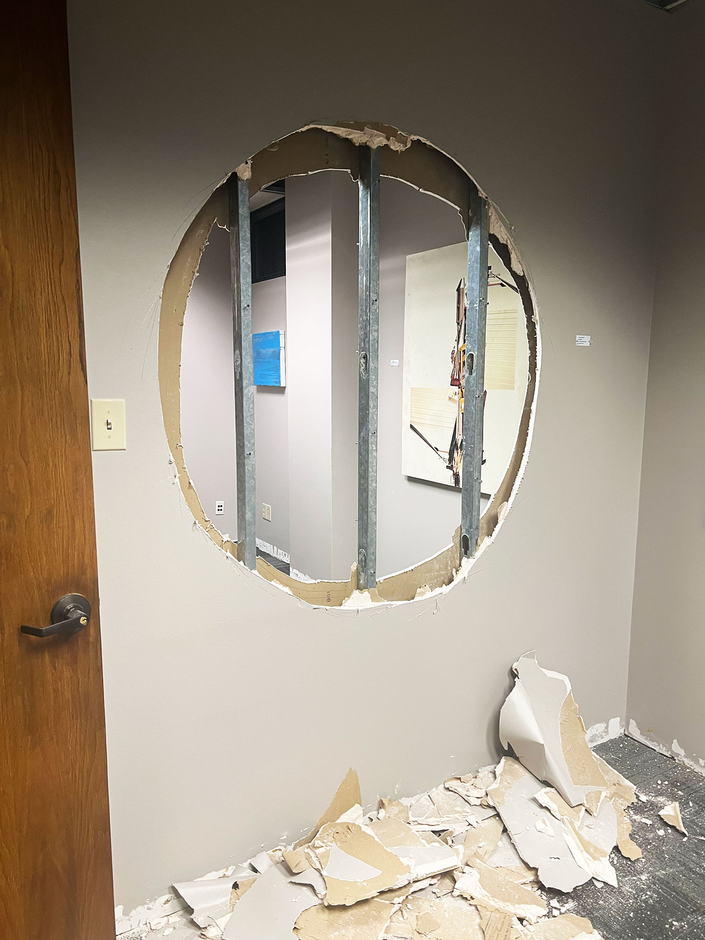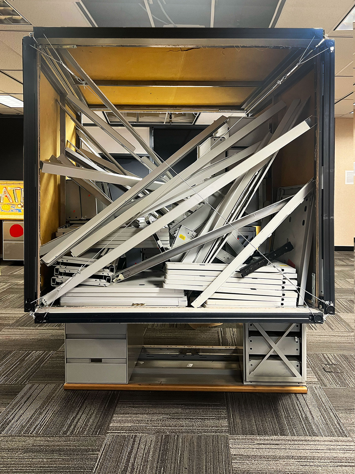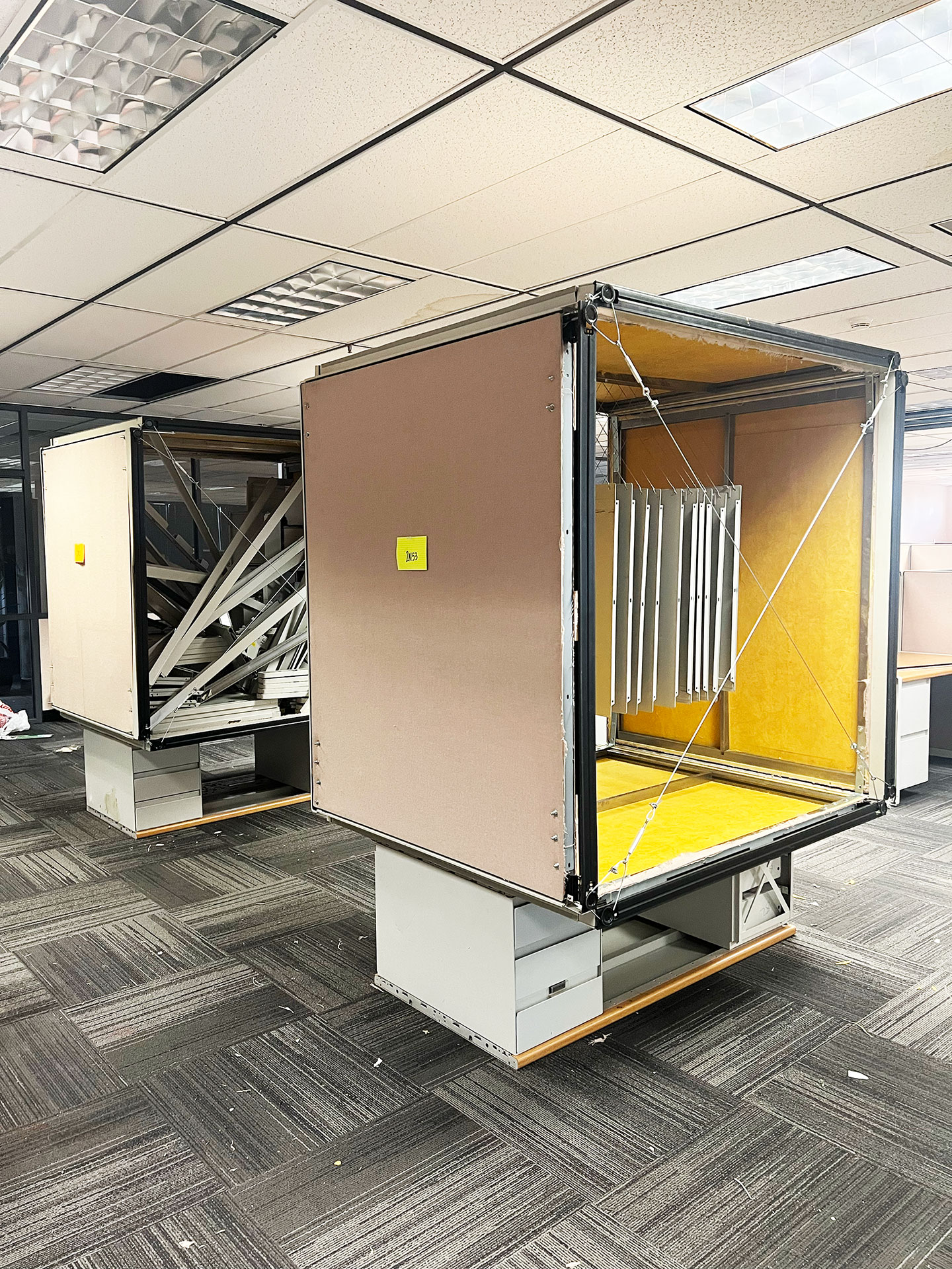 A group show titled Office Space. The concept was to turn an office floor full of old 1980's cubicles into an art space. Instead of just using them as displays, I took the cubicles apart and used the pieces to transform them into sculptures and installations. November 2023.