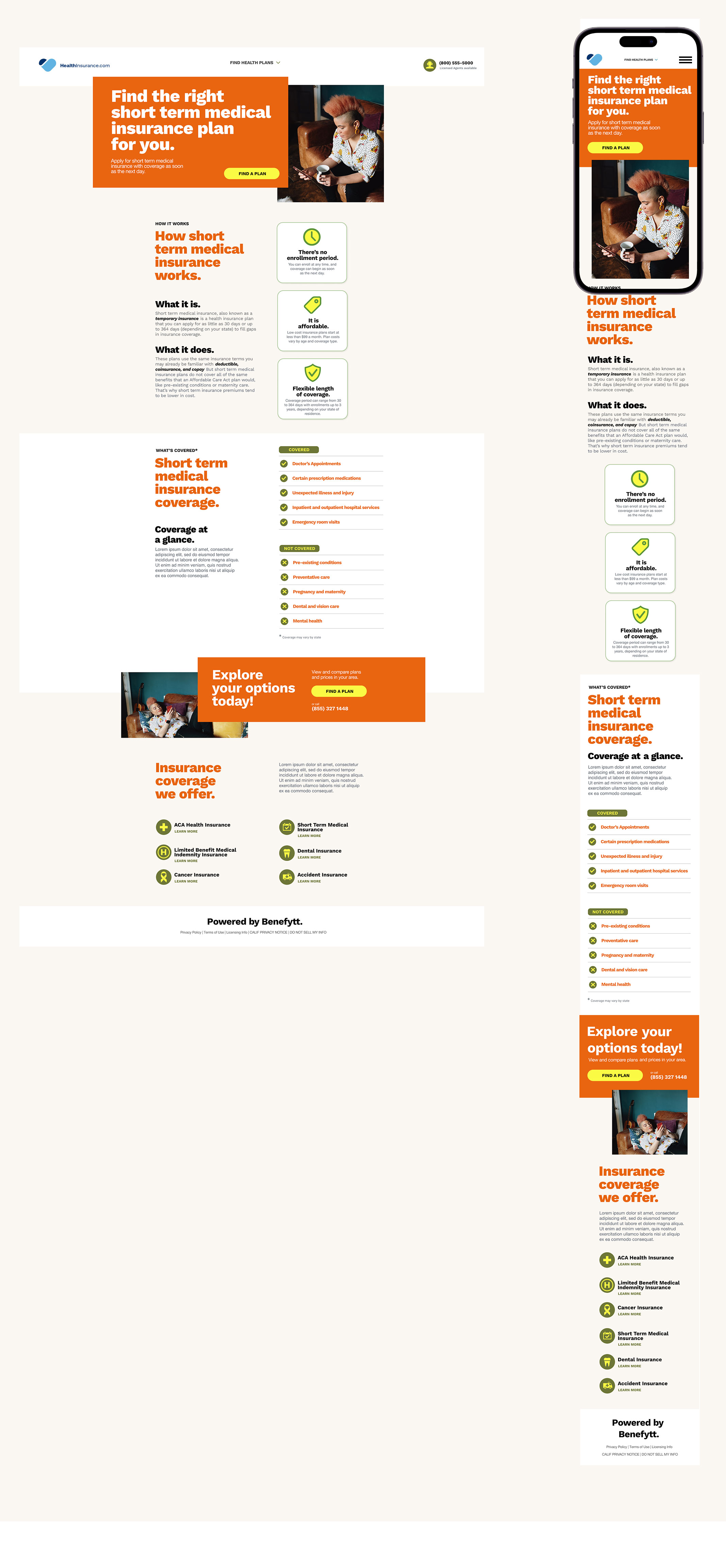 Design directions for Healthinsurance.com, a health insurance website powered by Benefytt, a tech company specializing in private health insurance marketplaces.