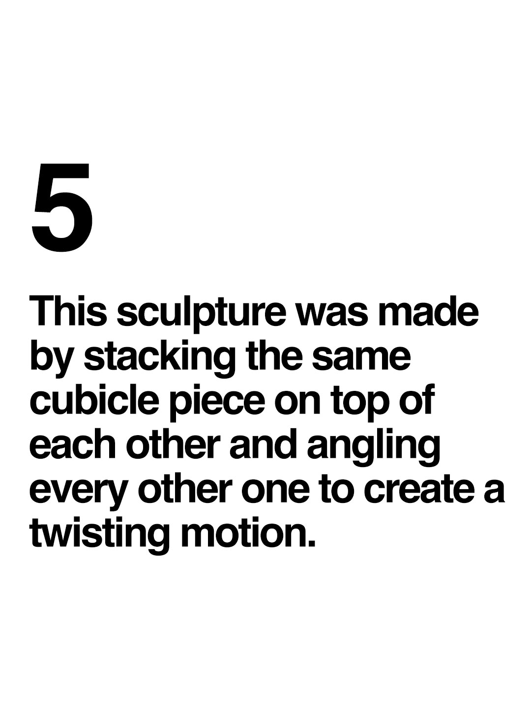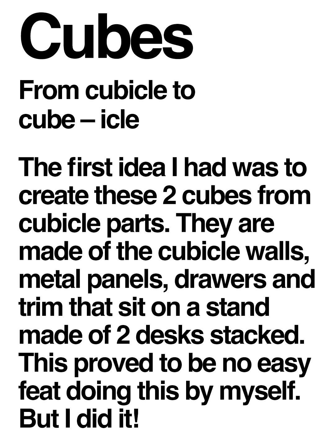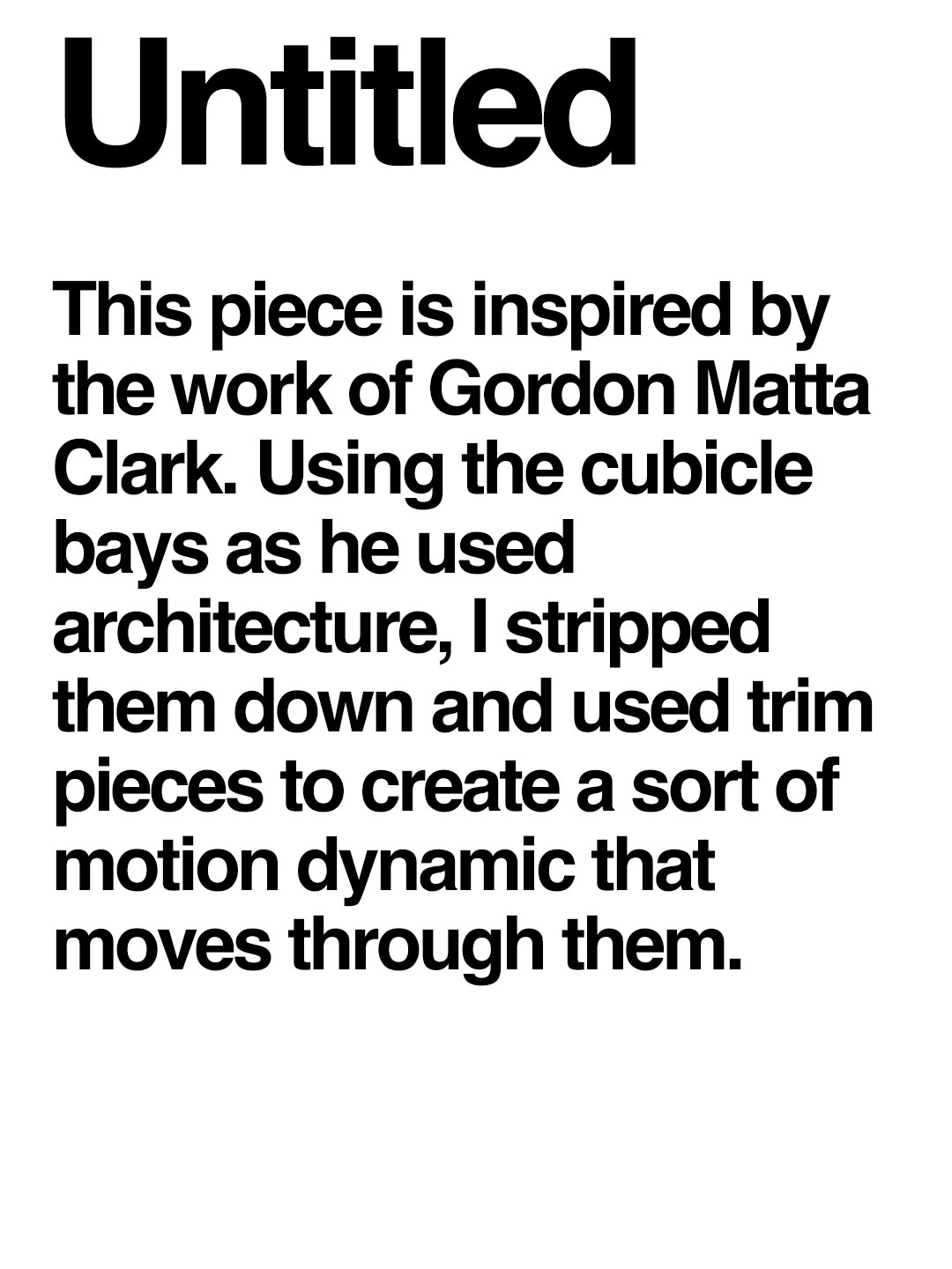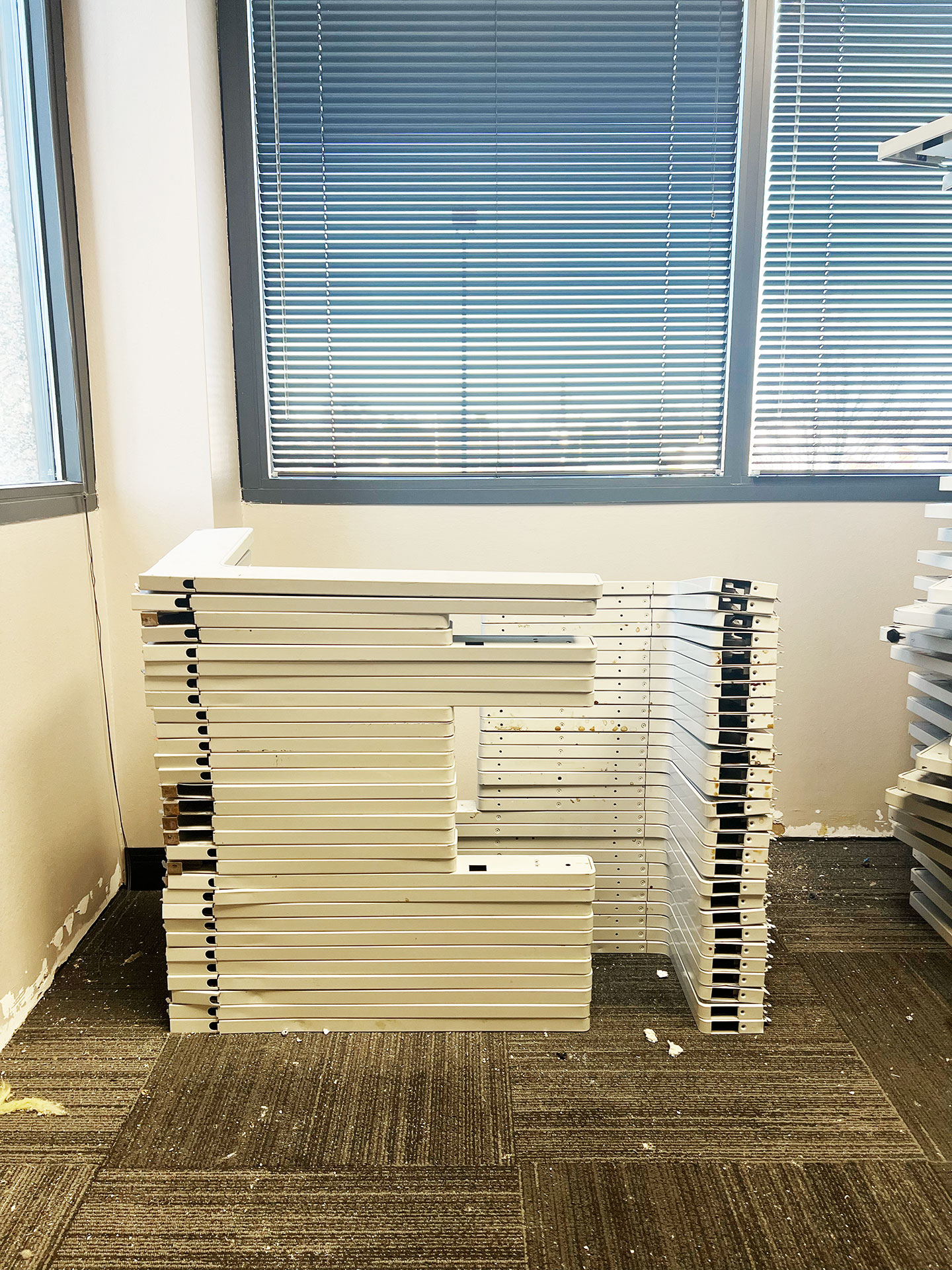 A group show titled Office Space. The concept was to turn an office floor full of old 1980's cubicles into an art space. Instead of just using them as displays, I took the cubicles apart and used the pieces to transform them into sculptures and installations. November 2023.