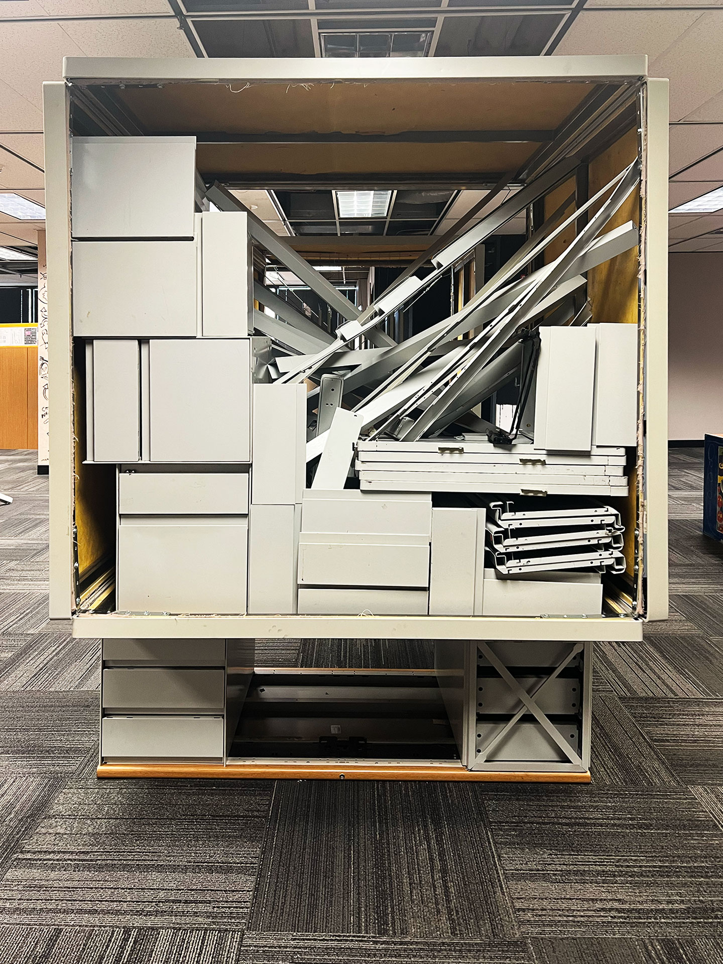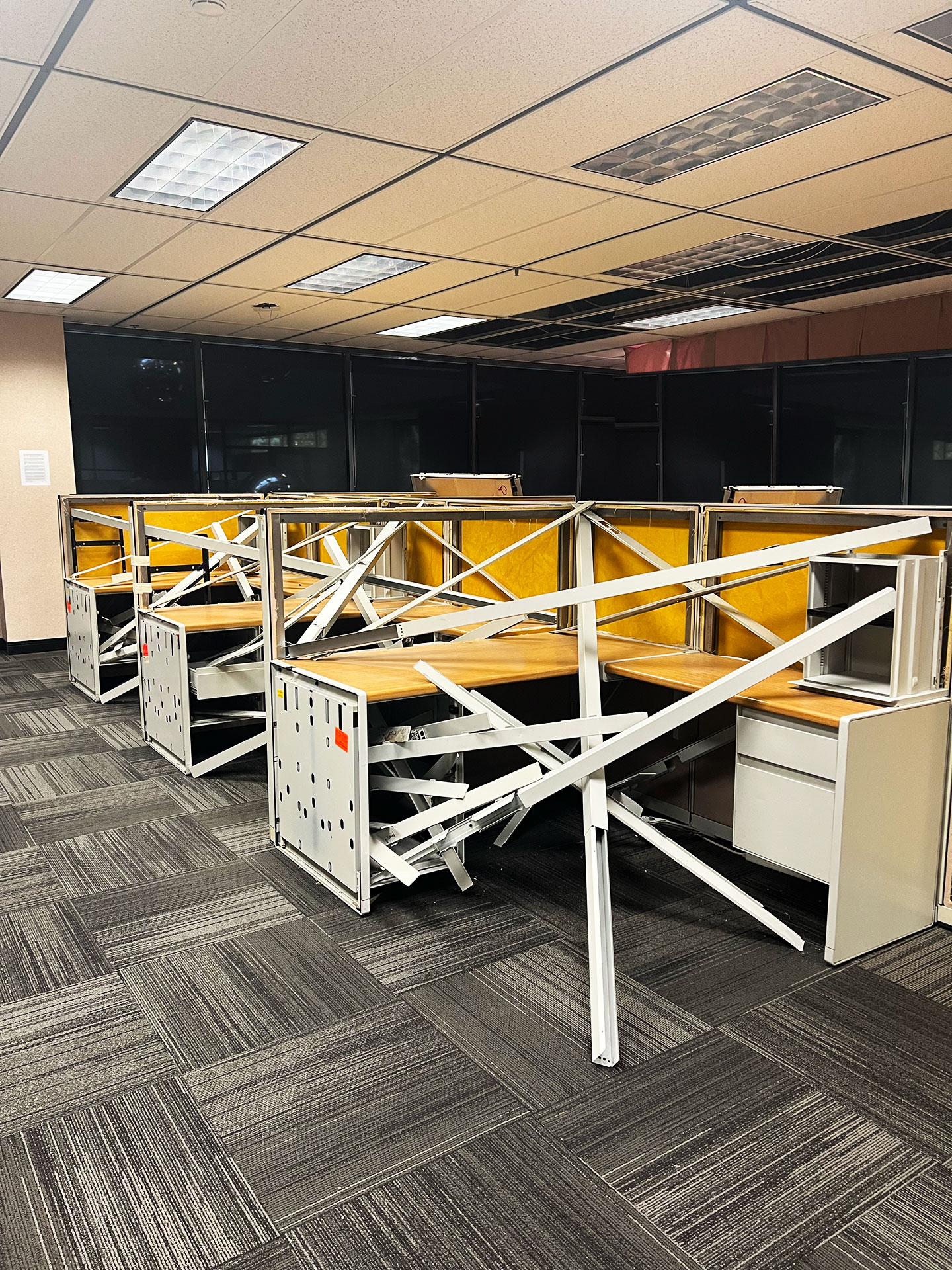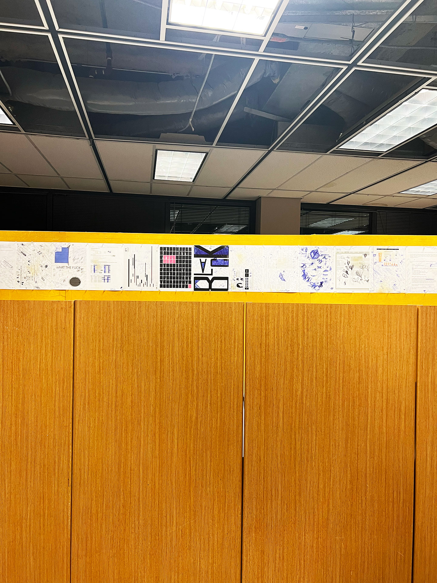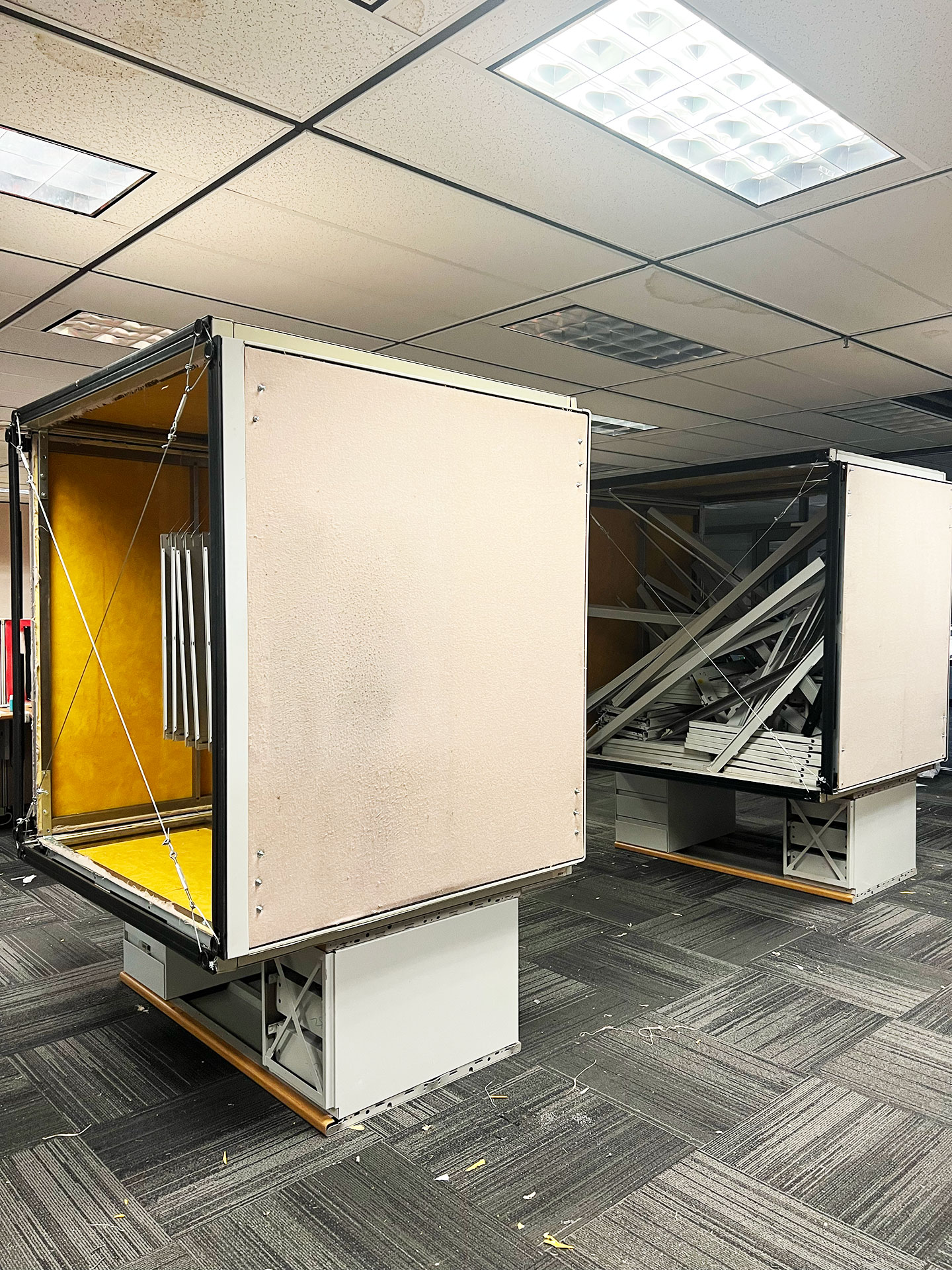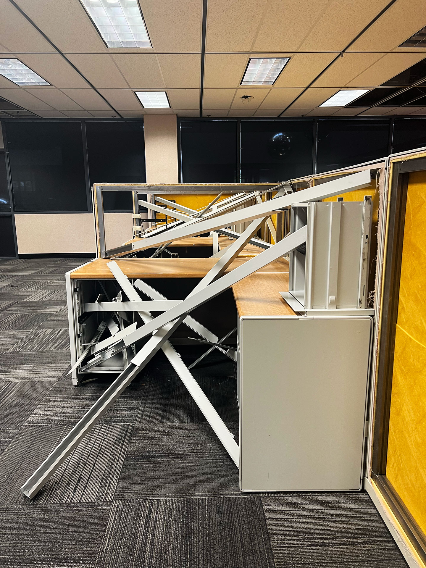 A group show titled Office Space. The concept was to turn an office floor full of old 1980's cubicles into an art space. Instead of just using them as displays, I took the cubicles apart and used the pieces to transform them into sculptures and installations. November 2023.