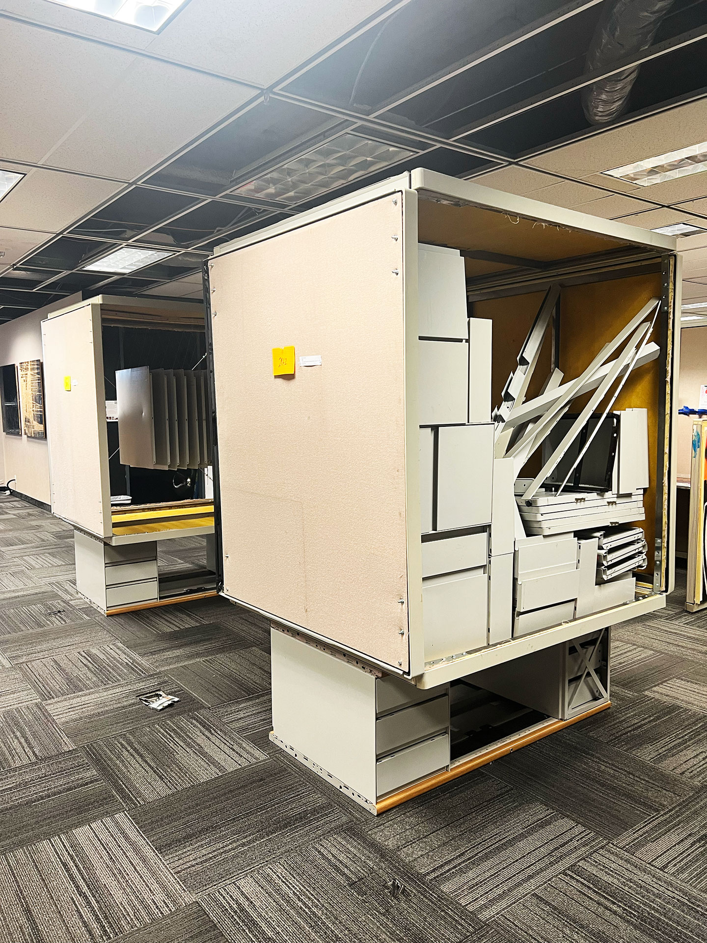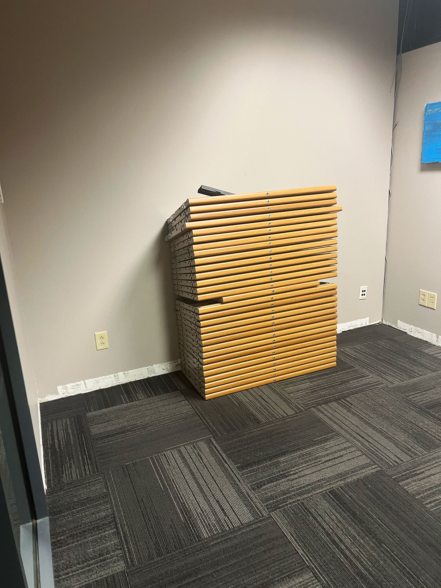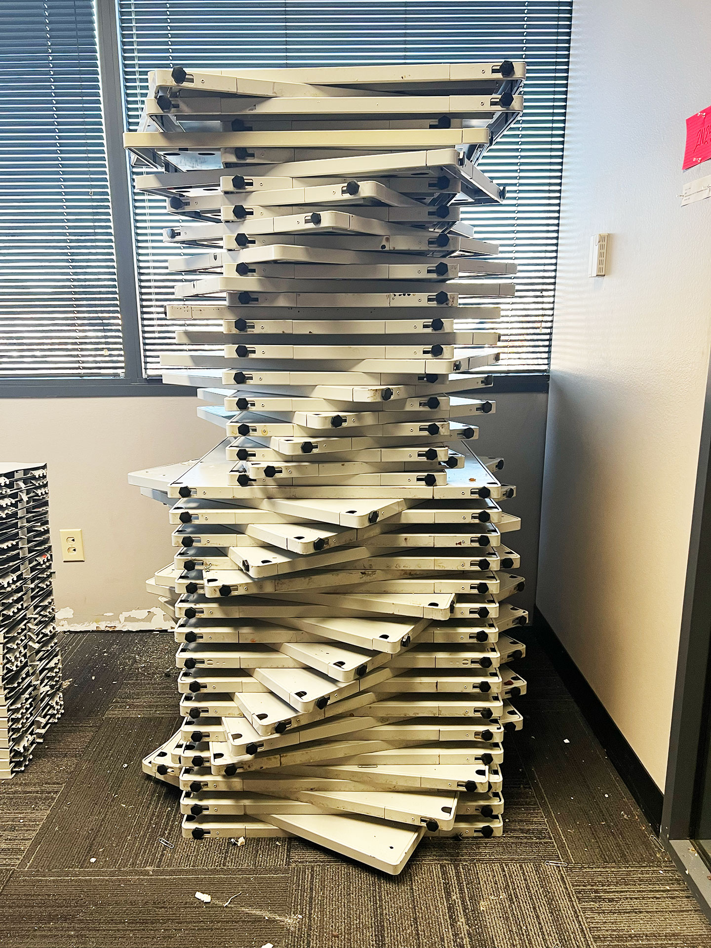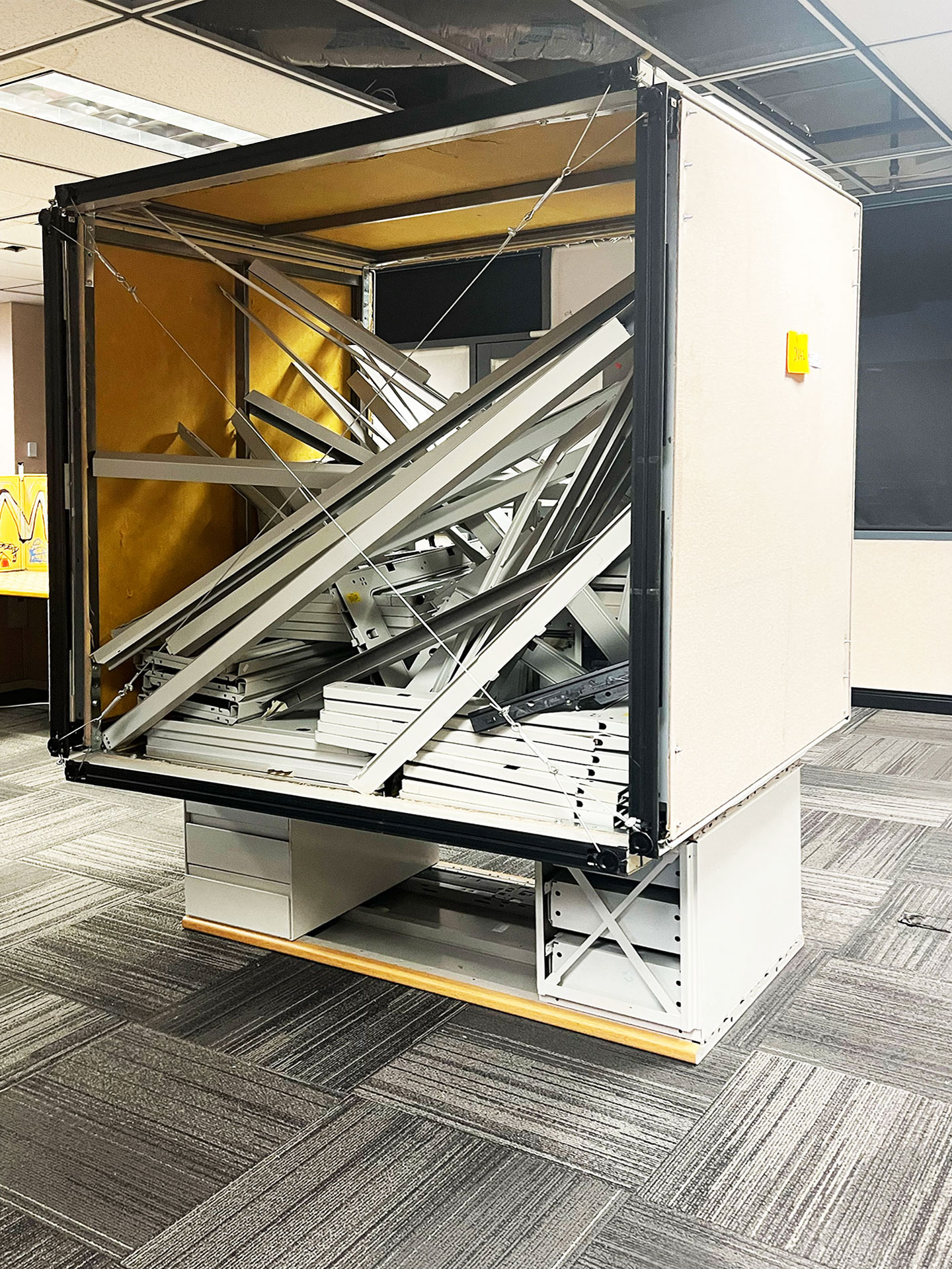 A group show titled Office Space. The concept was to turn an office floor full of old 1980's cubicles into an art space. Instead of just using them as displays, I took the cubicles apart and used the pieces to transform them into sculptures and installations. November 2023.