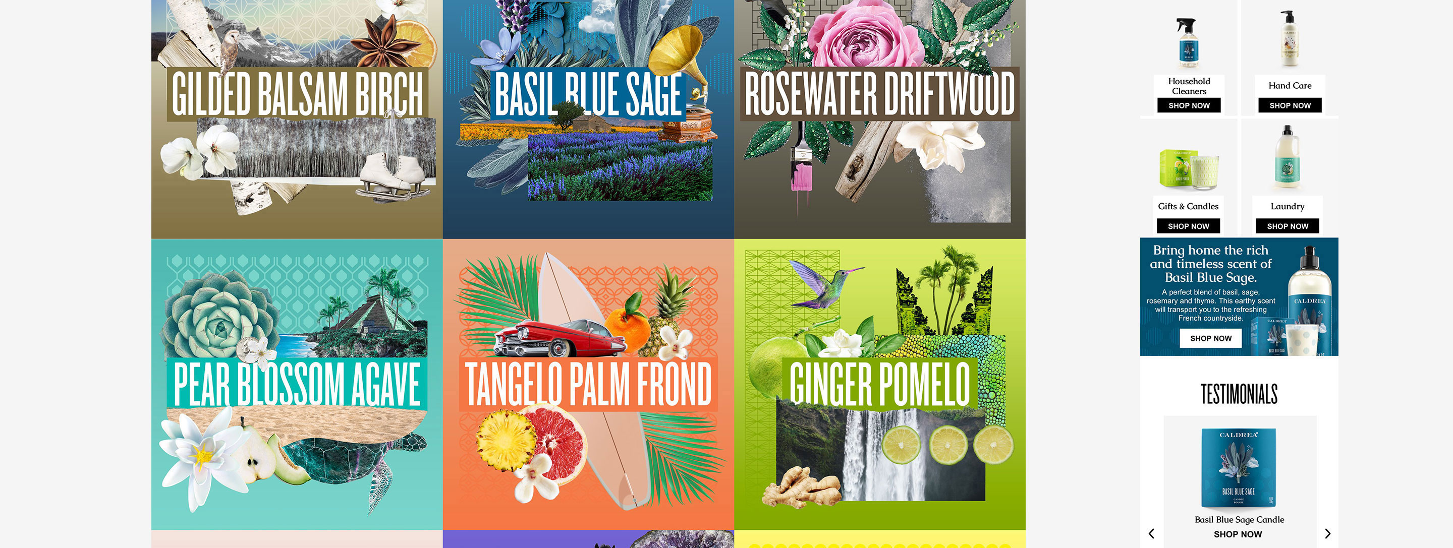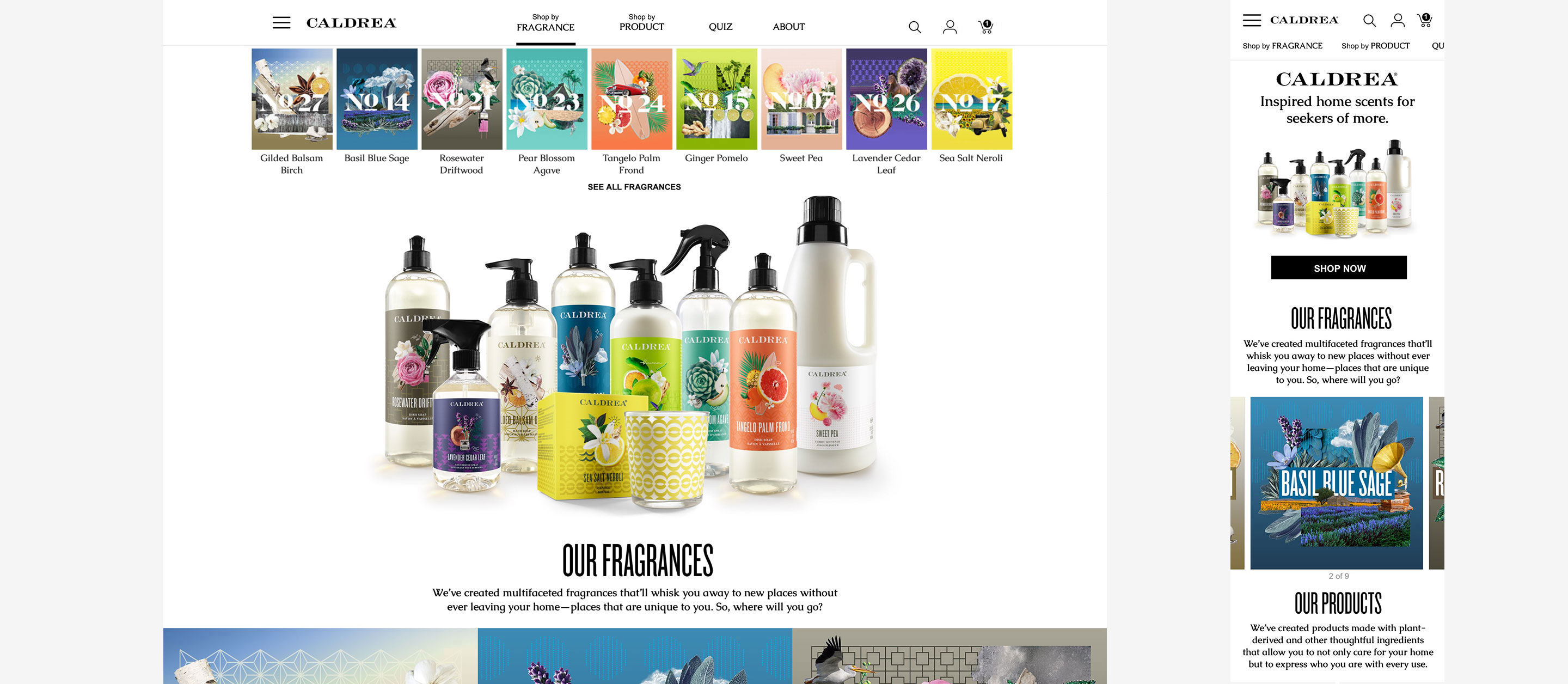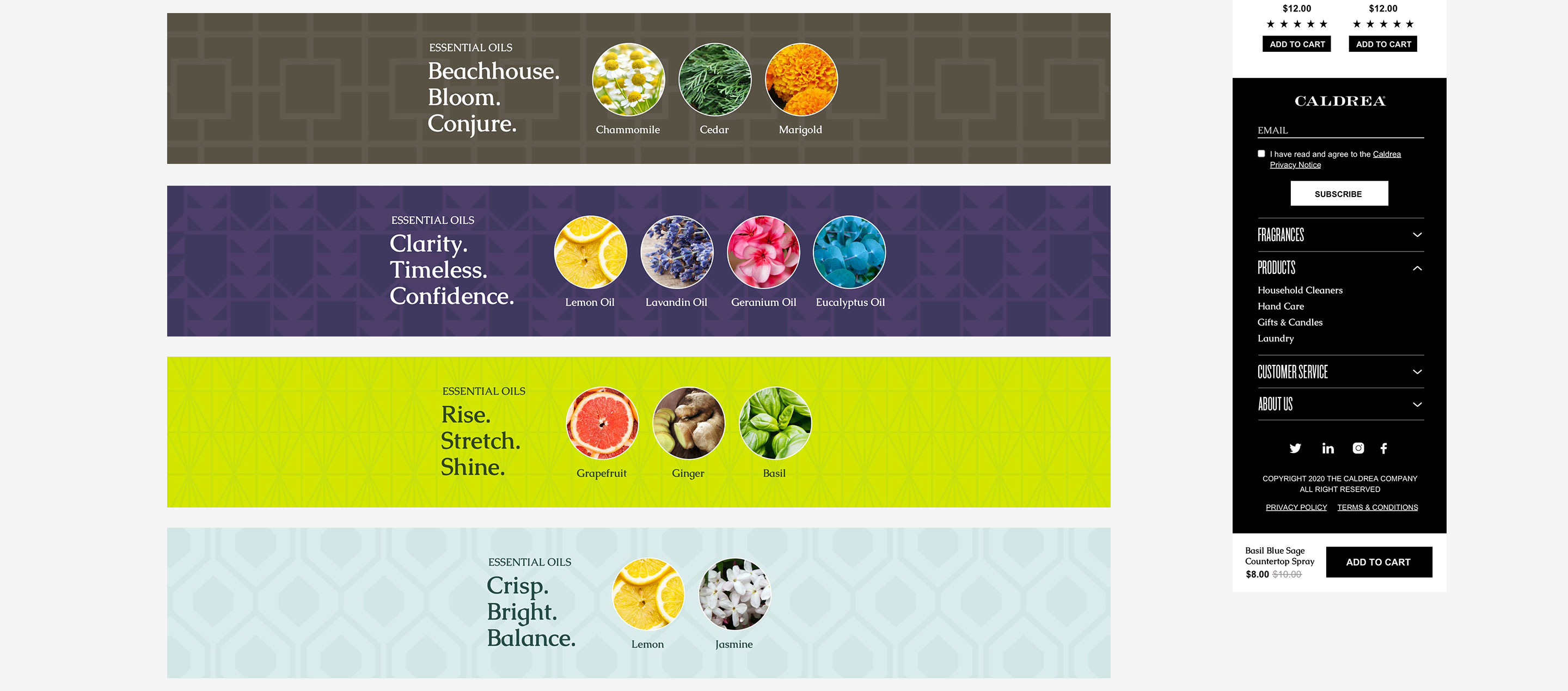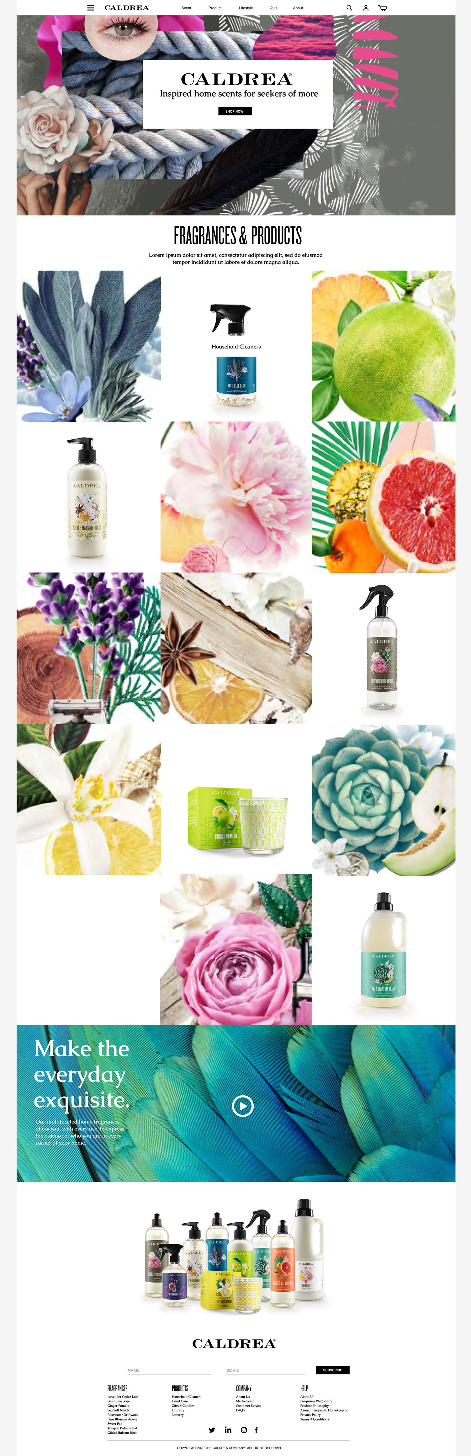 Website redesign for Caldrea household products, a sister brand of Mrs. Meyers, both under the SCJ brand.