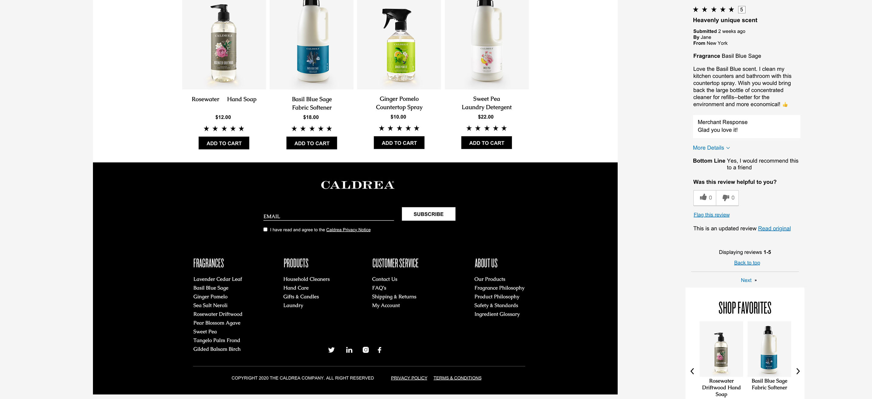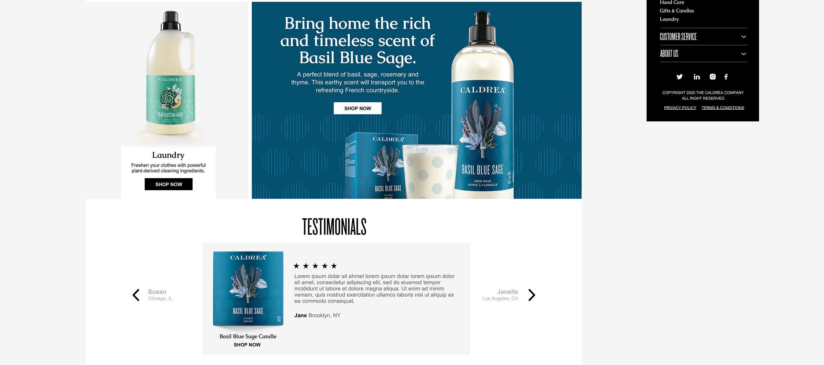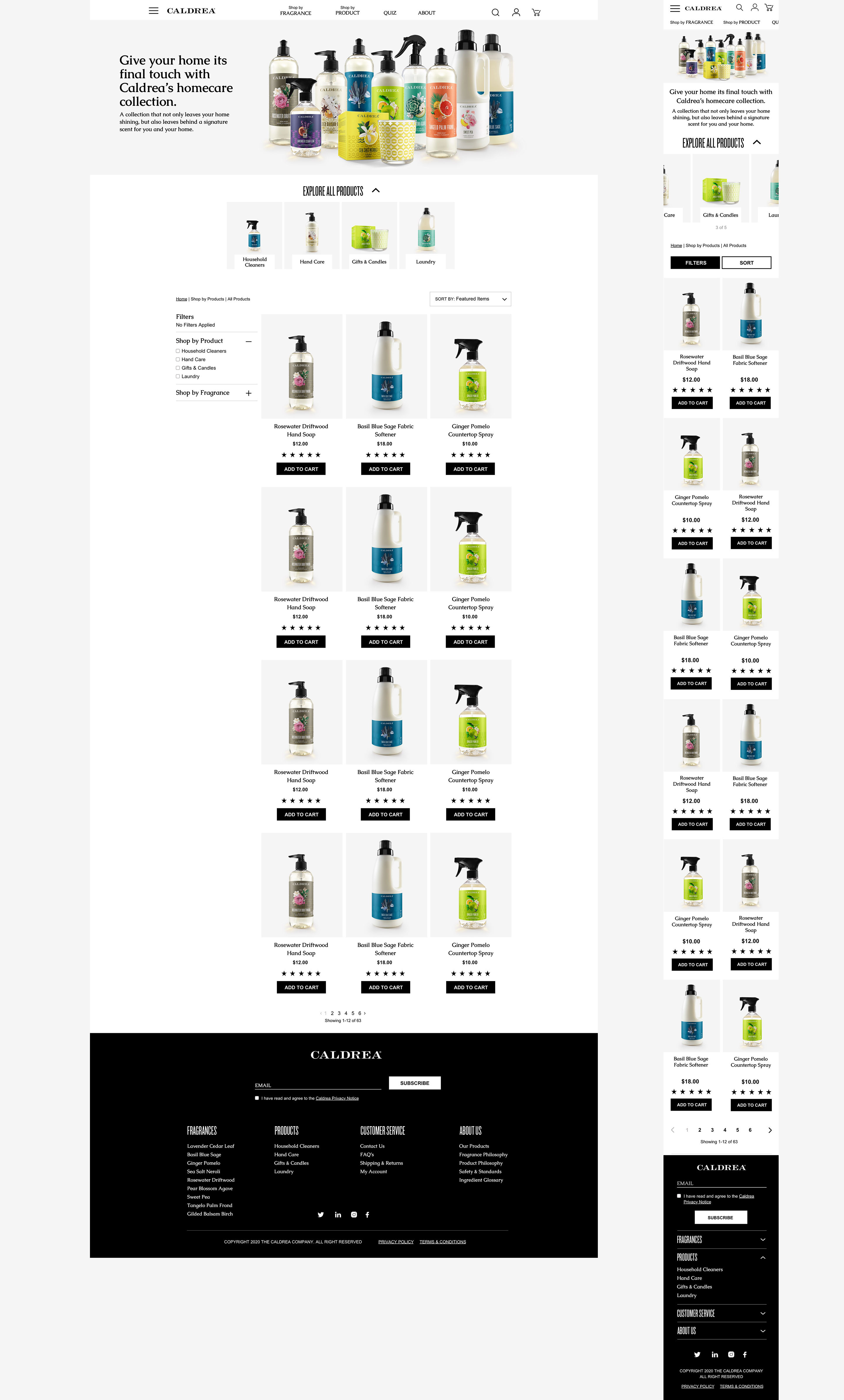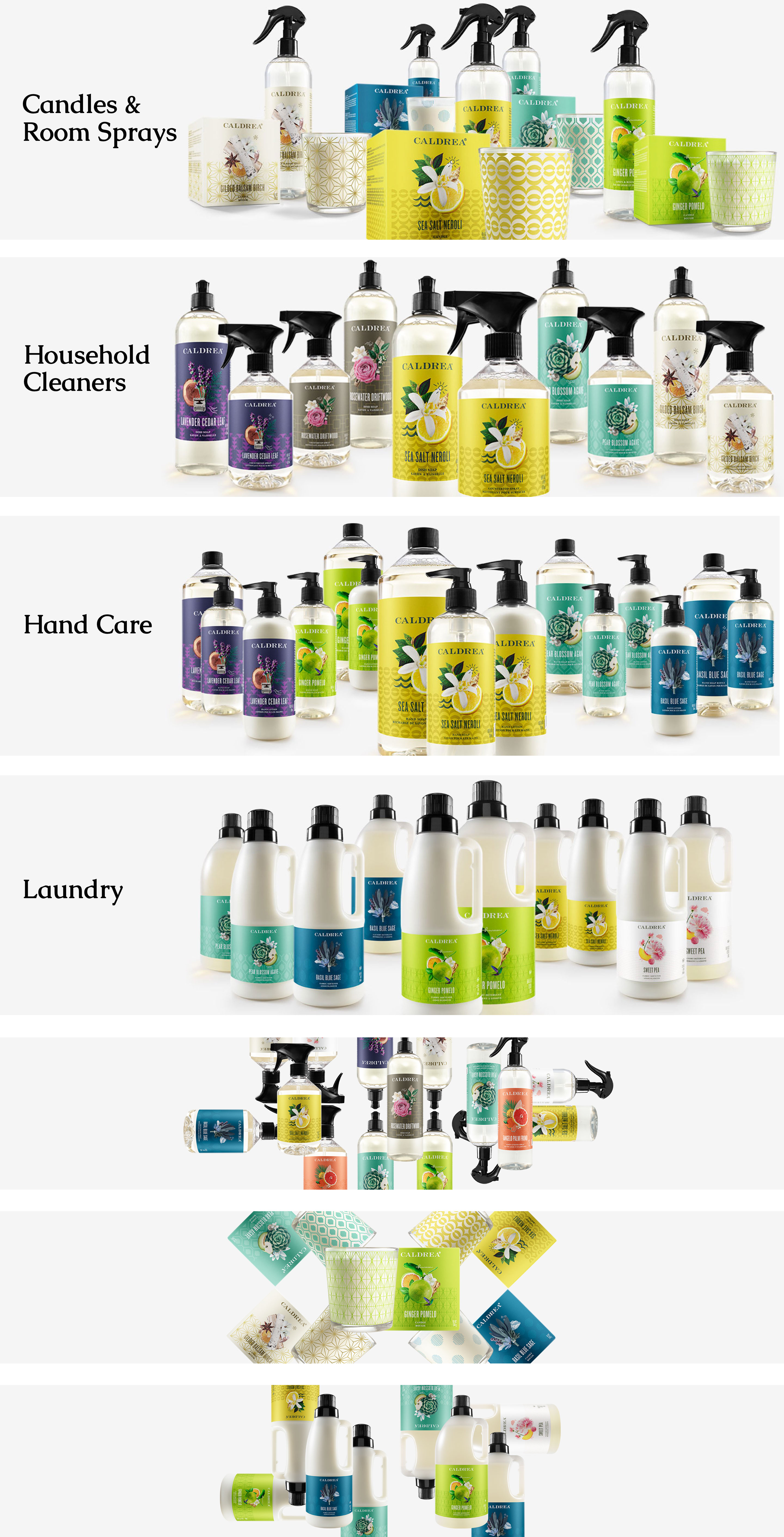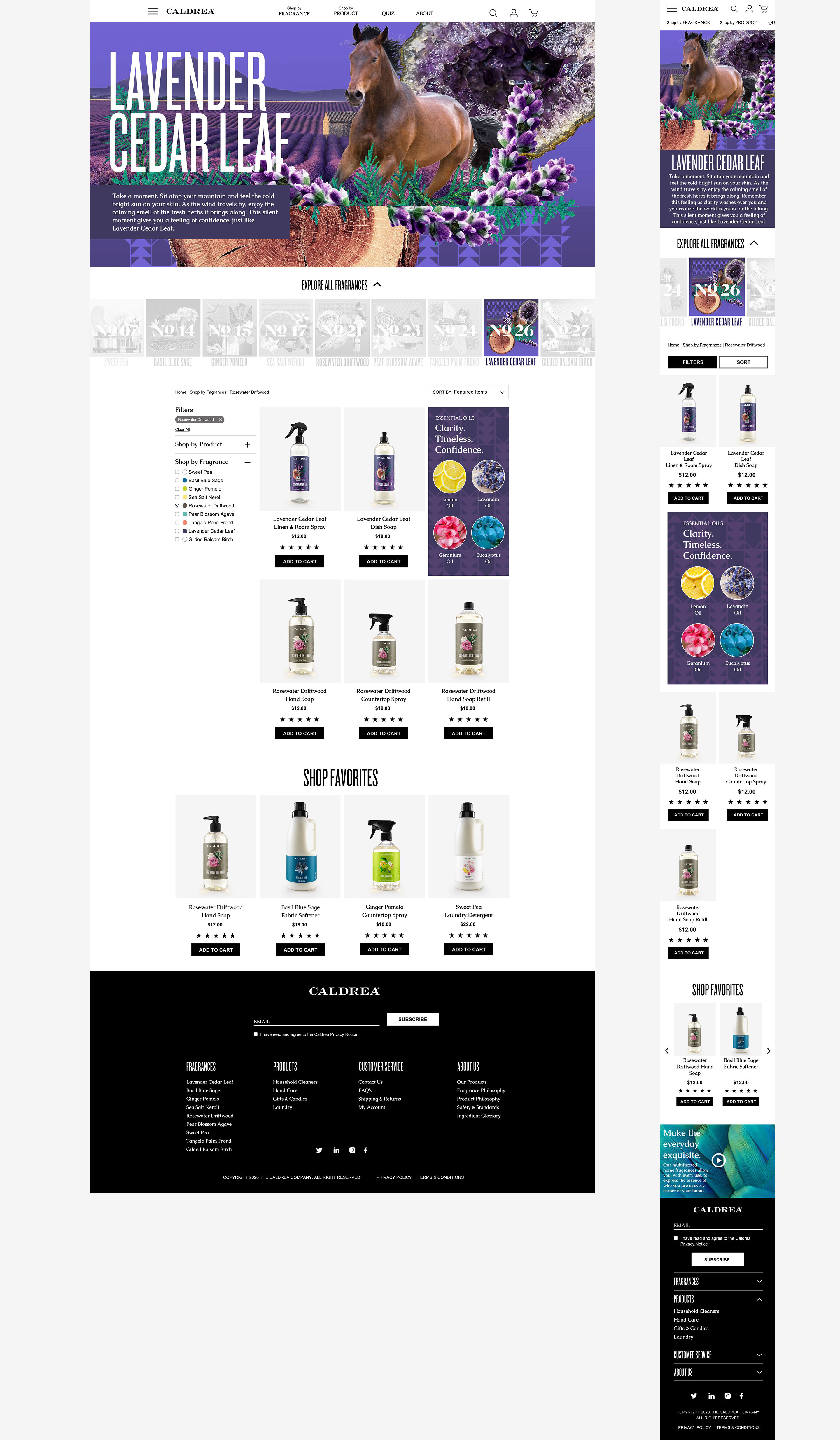 Website redesign for Caldrea household products, a sister brand of Mrs. Meyers, both under the SCJ brand.