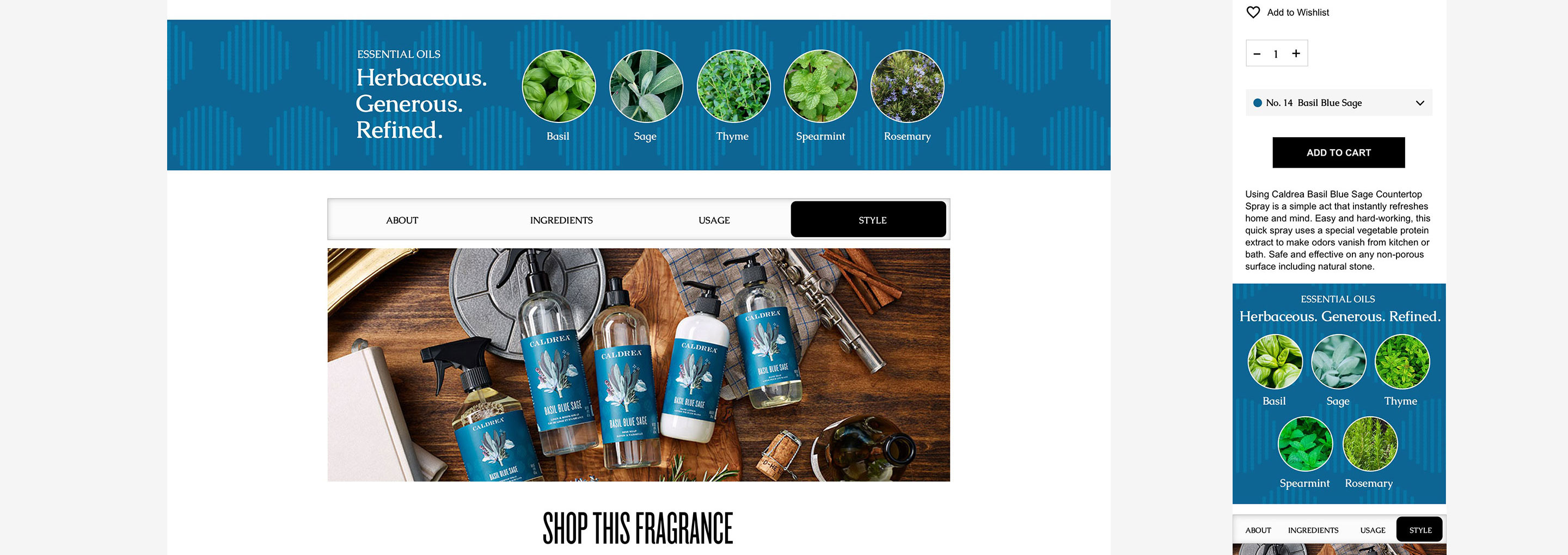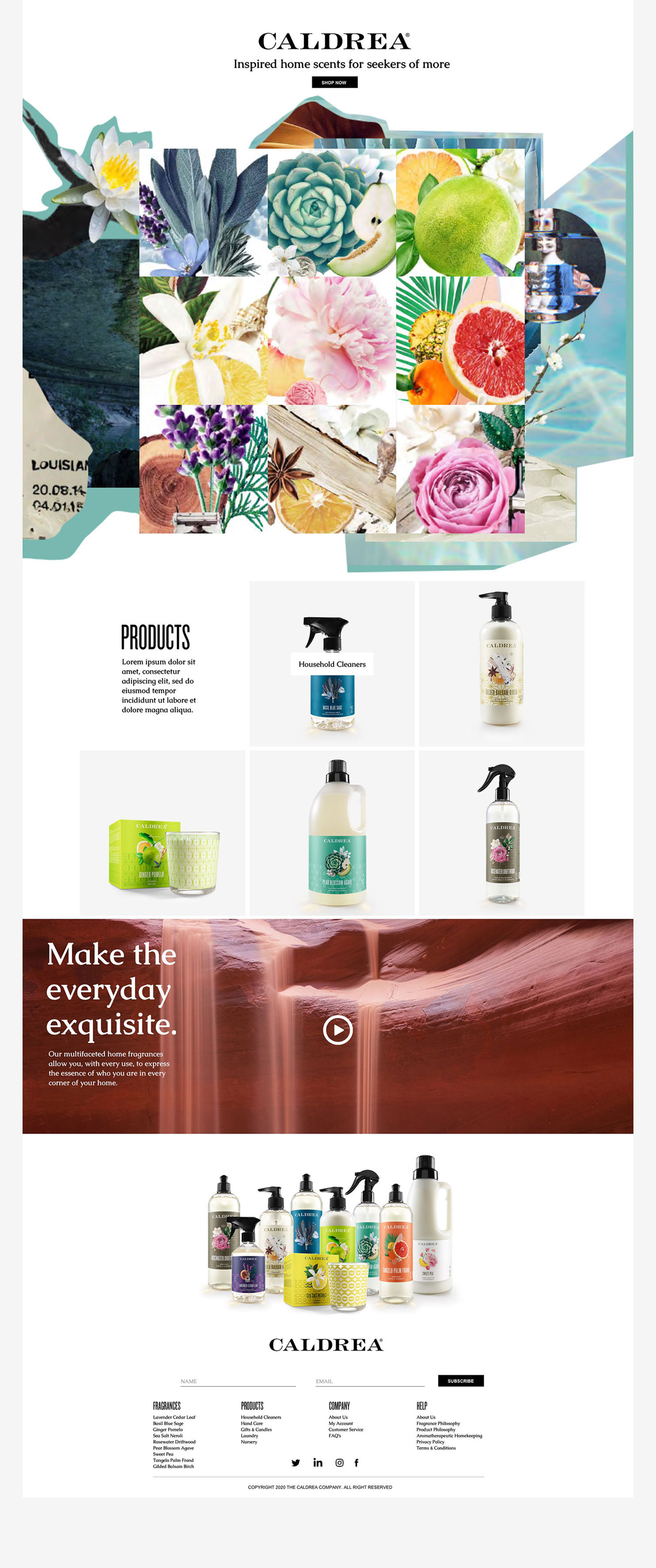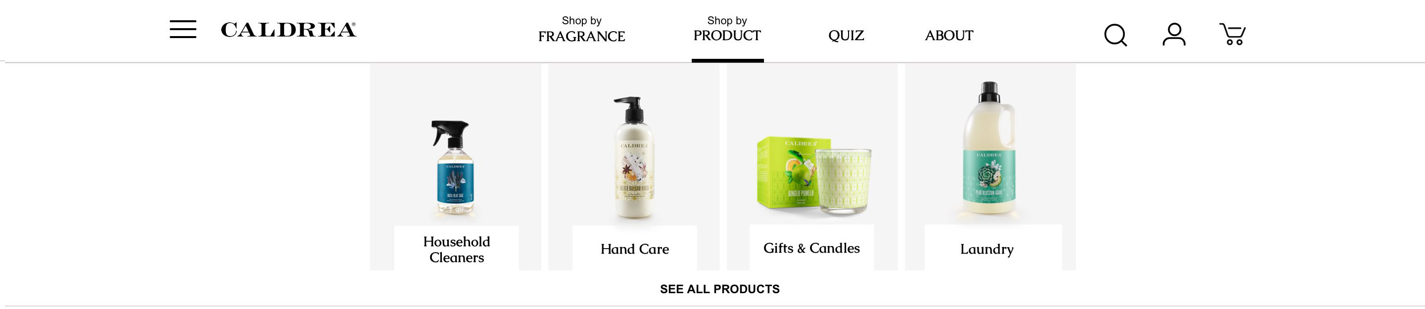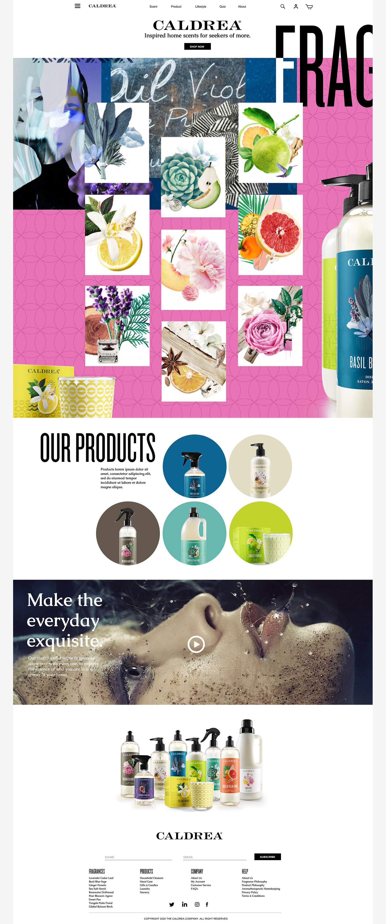 Website redesign for Caldrea household products, a sister brand of Mrs. Meyers, both under the SCJ brand.