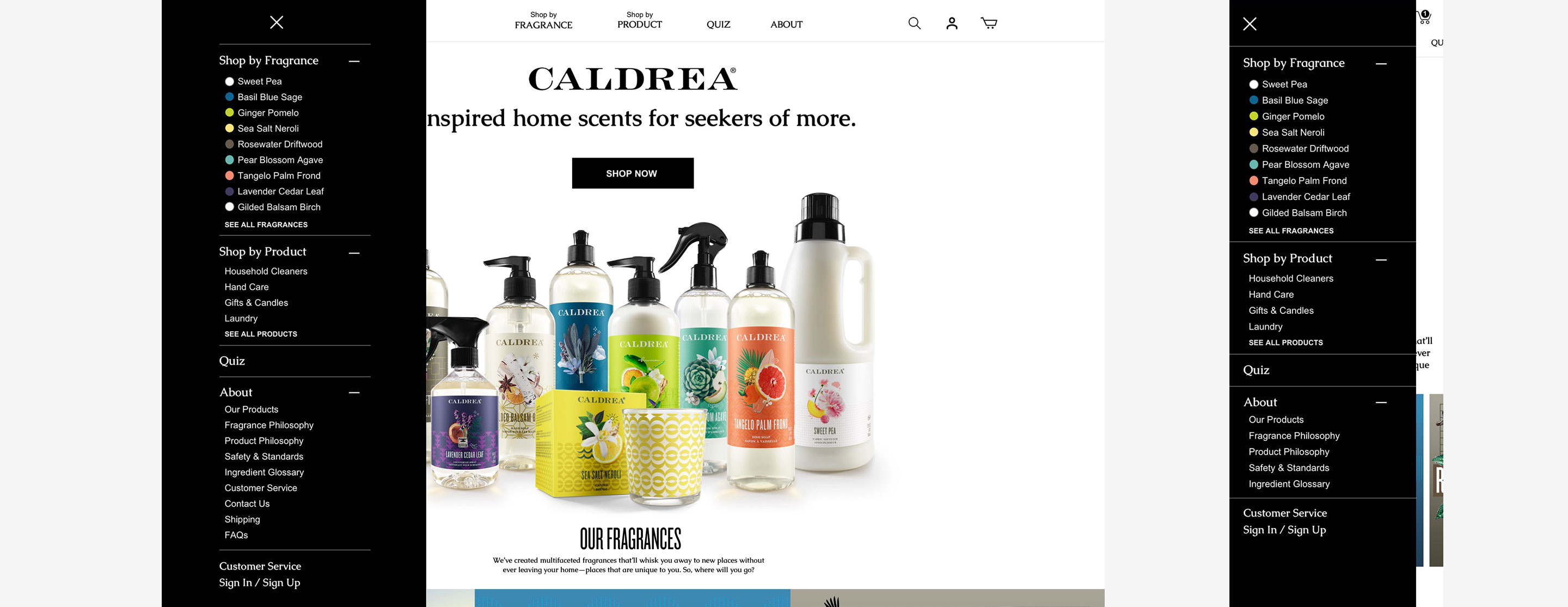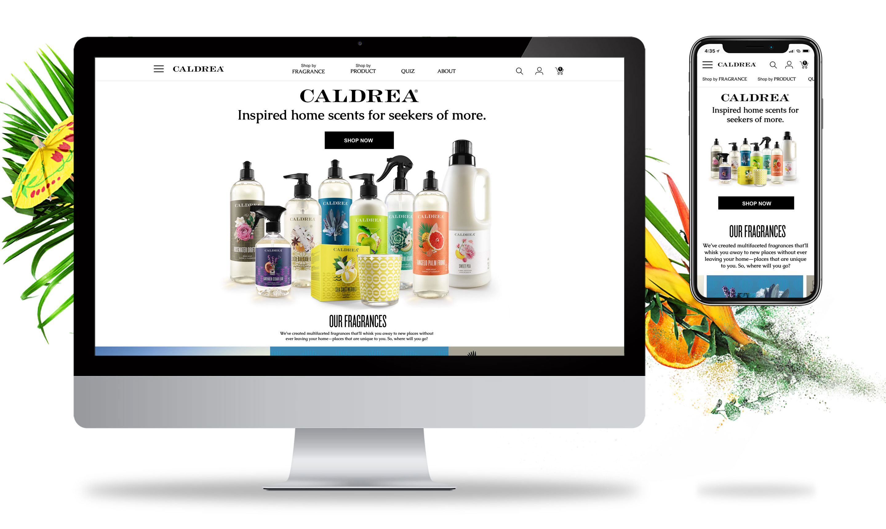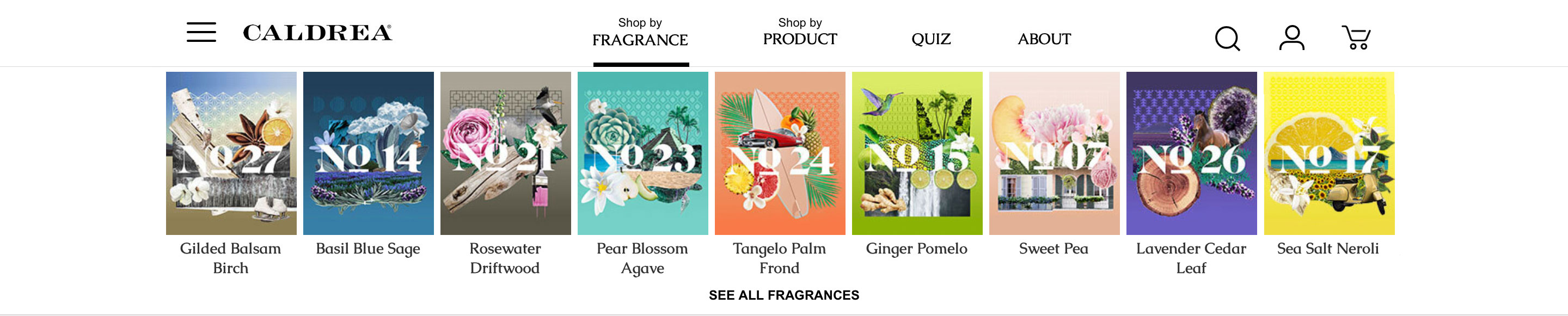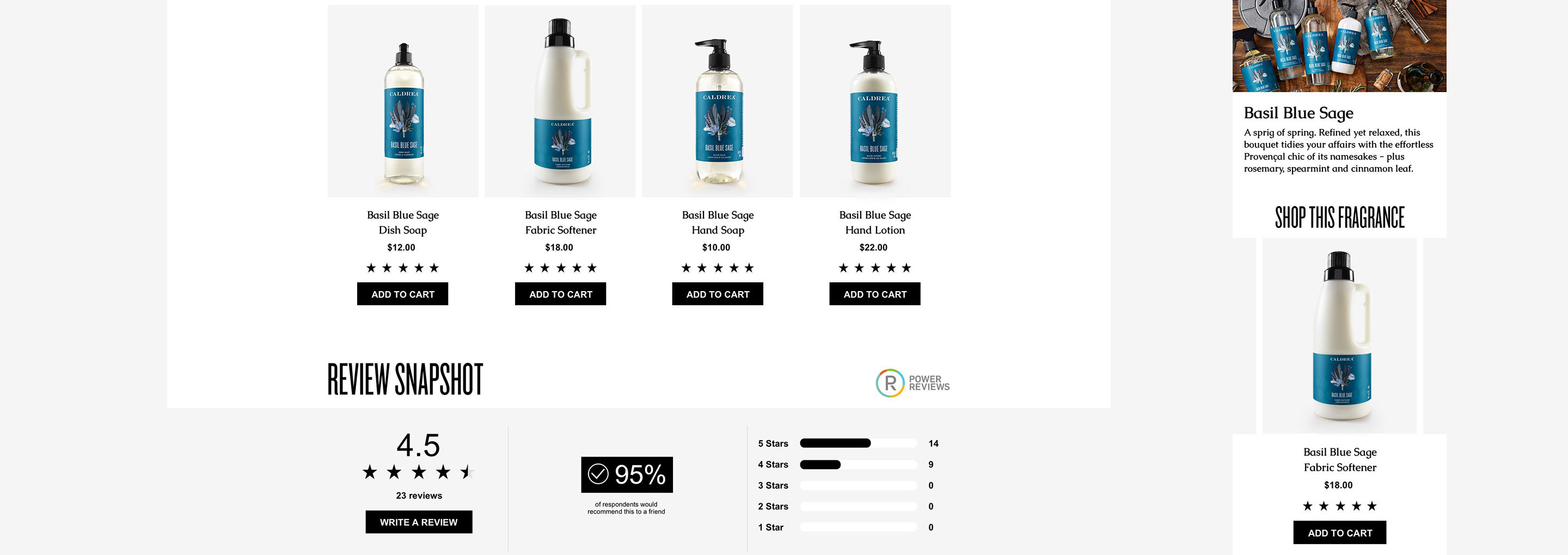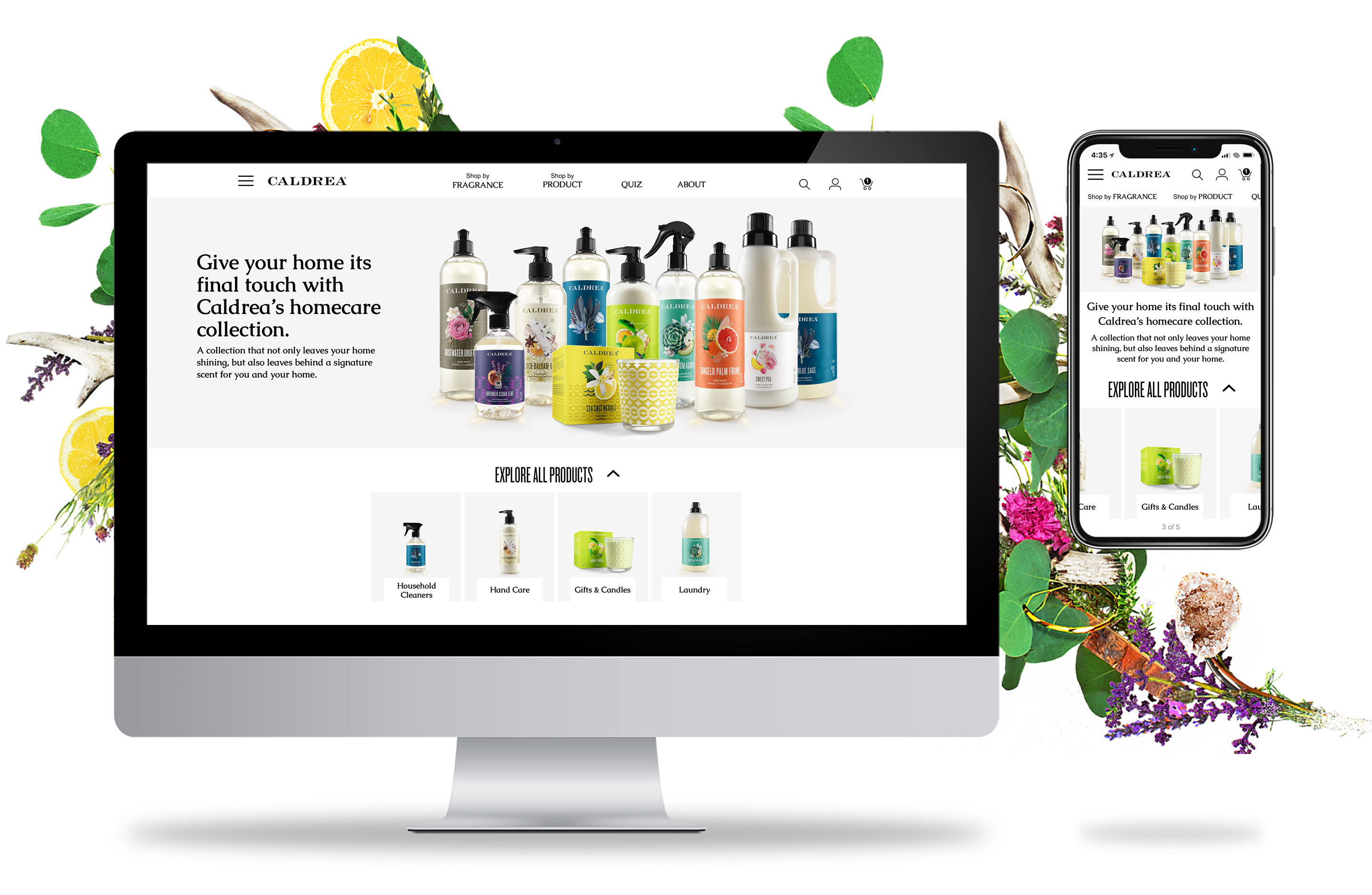 Website redesign for Caldrea household products, a sister brand of Mrs. Meyers, both under the SCJ brand.