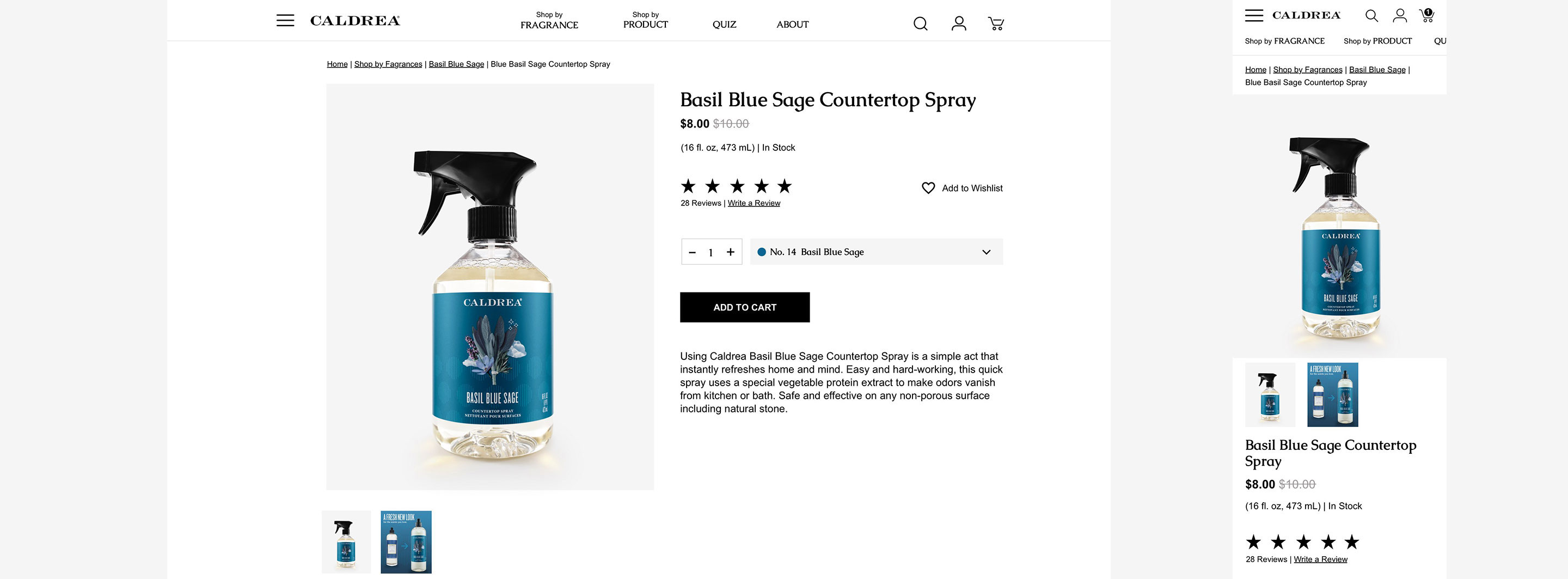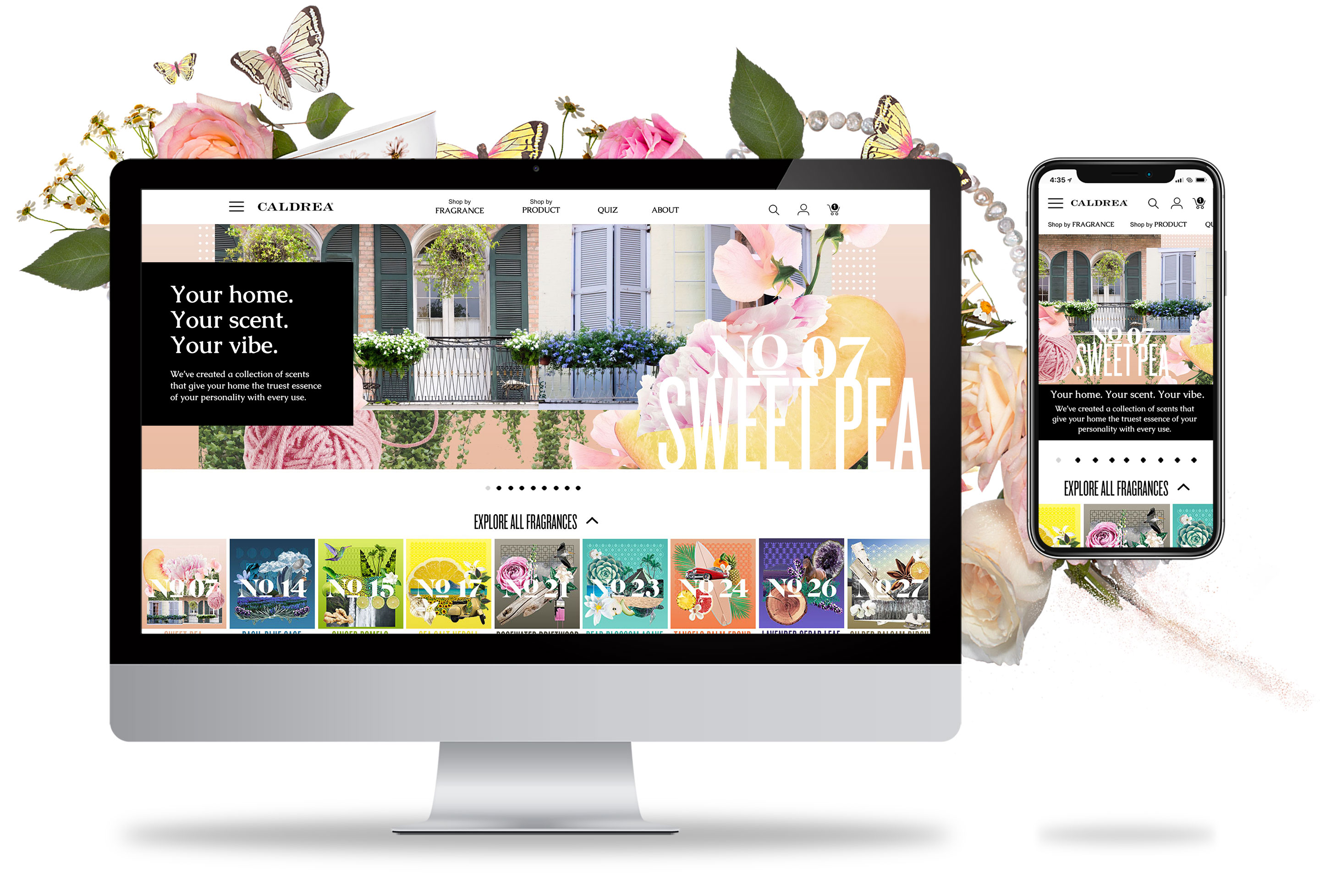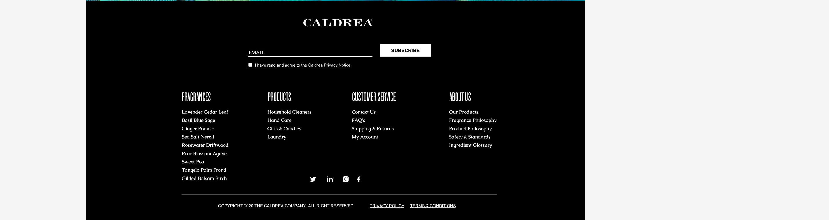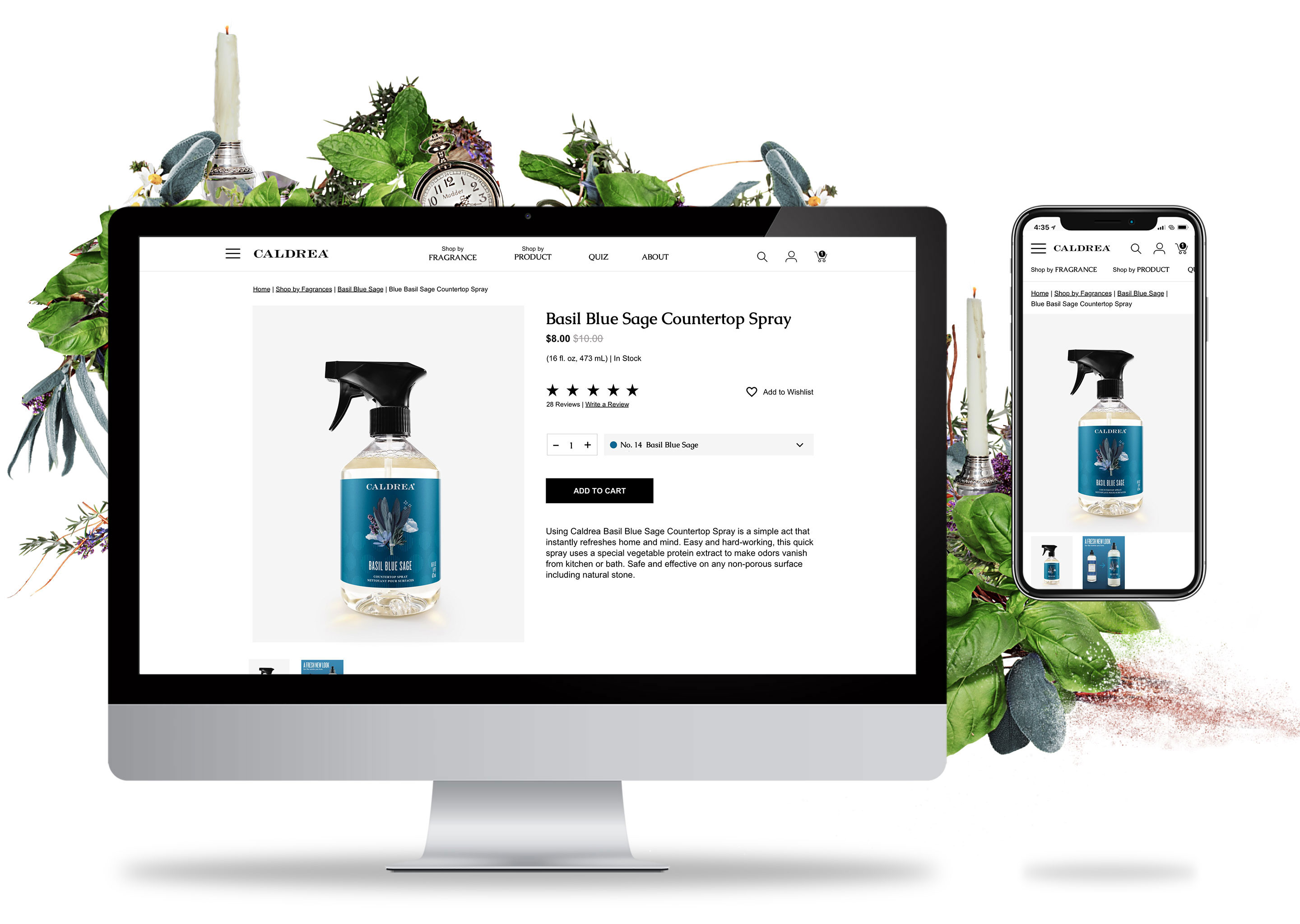 Website redesign for Caldrea household products, a sister brand of Mrs. Meyers, both under the SCJ brand.