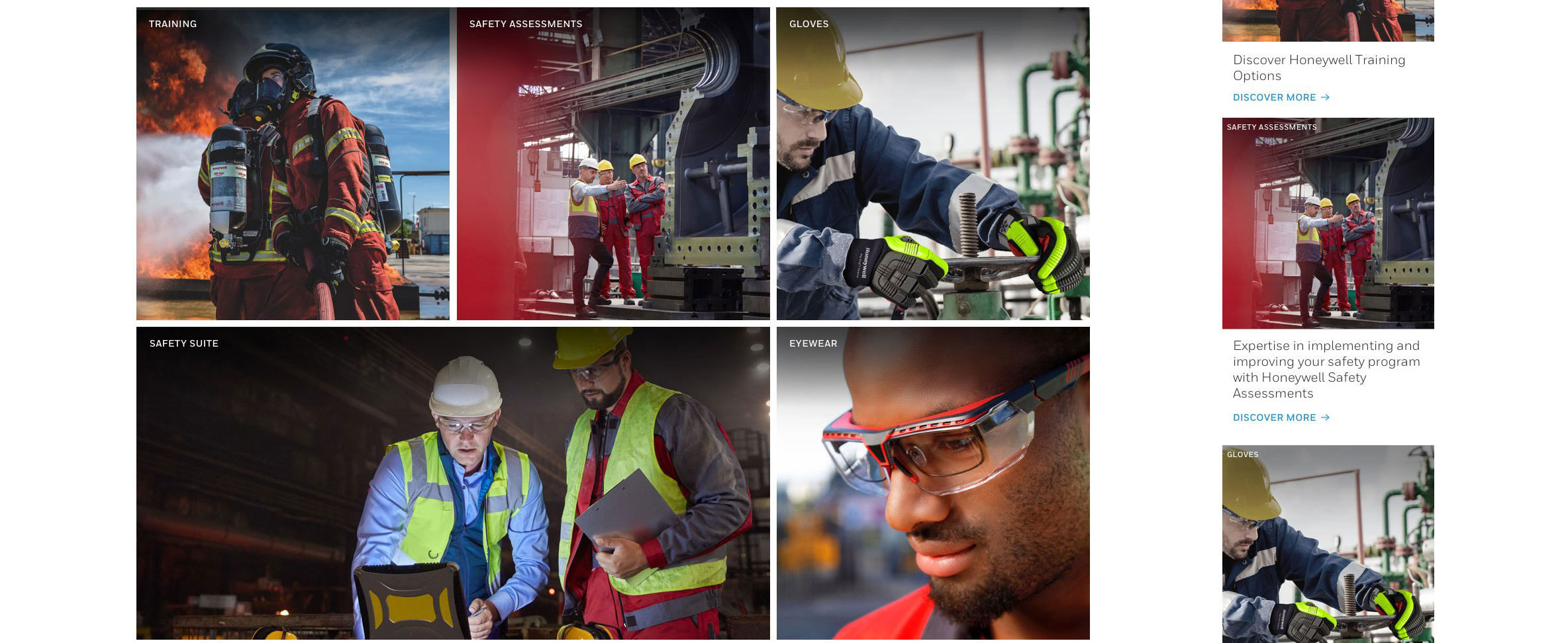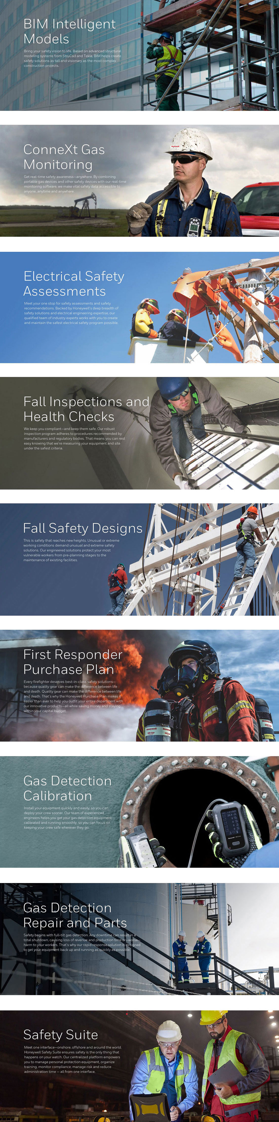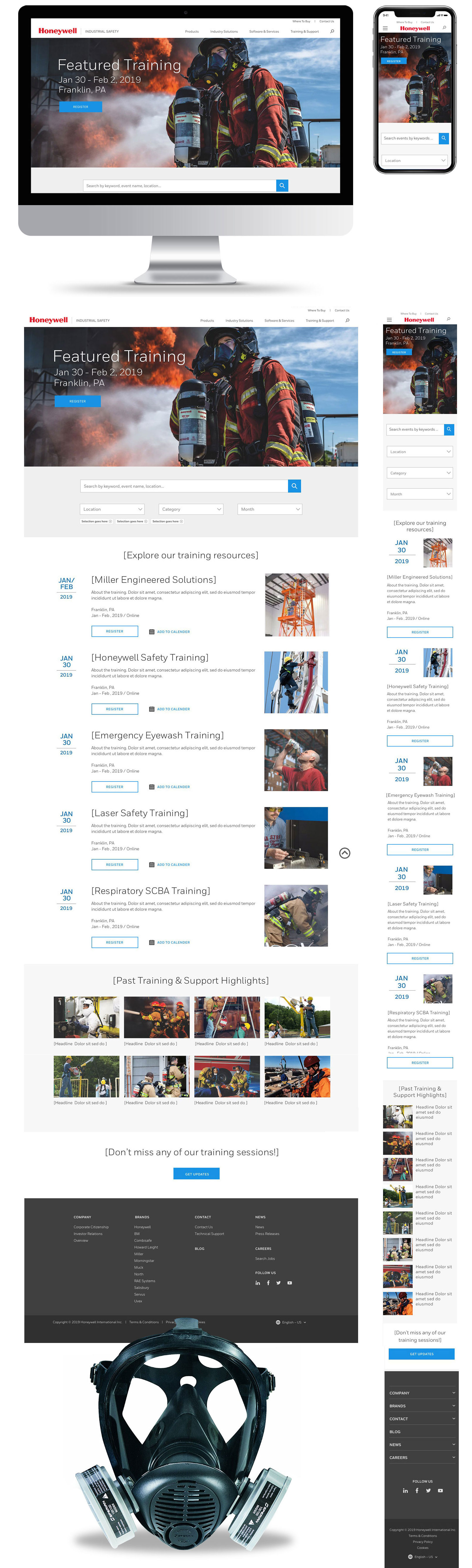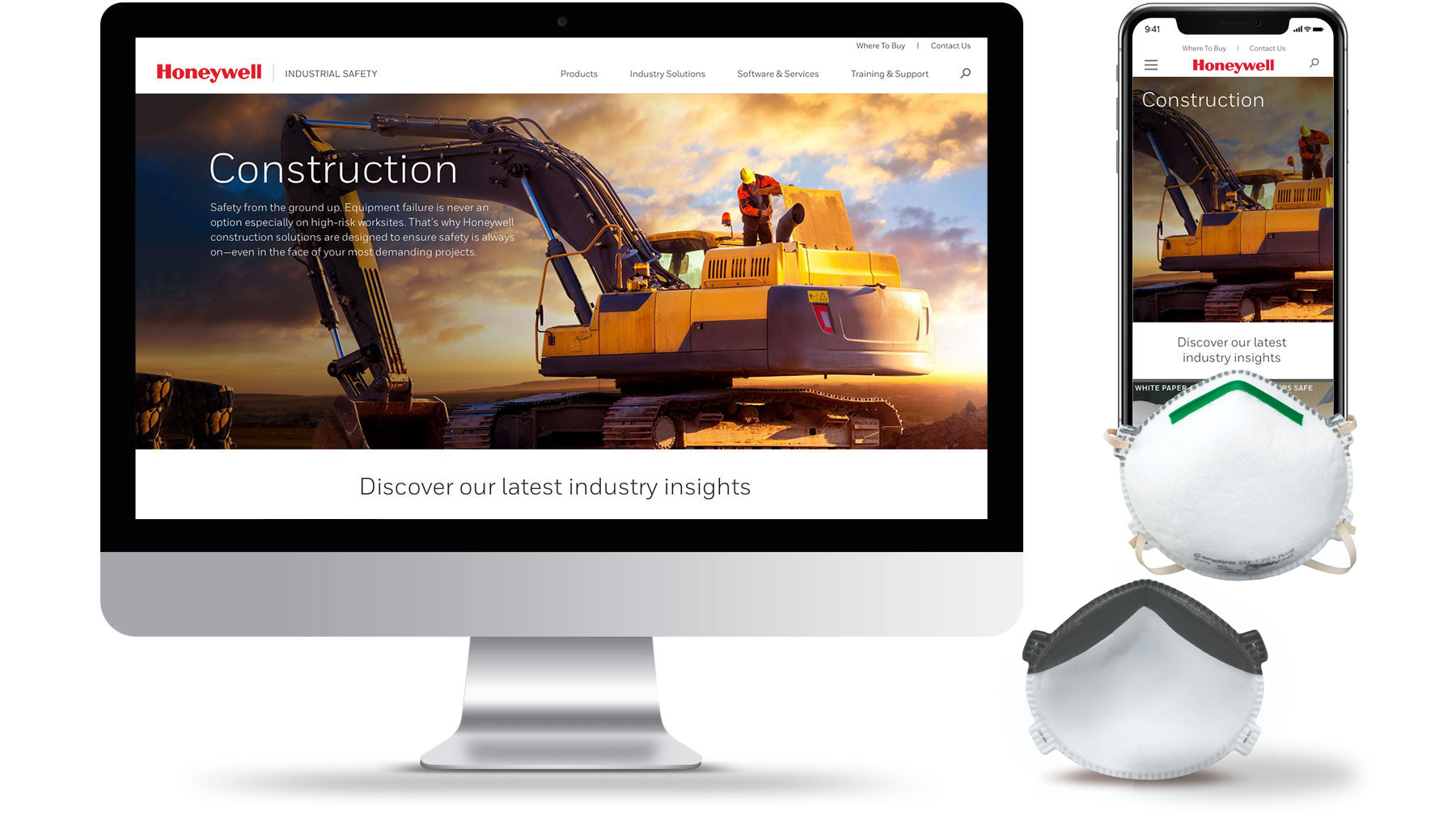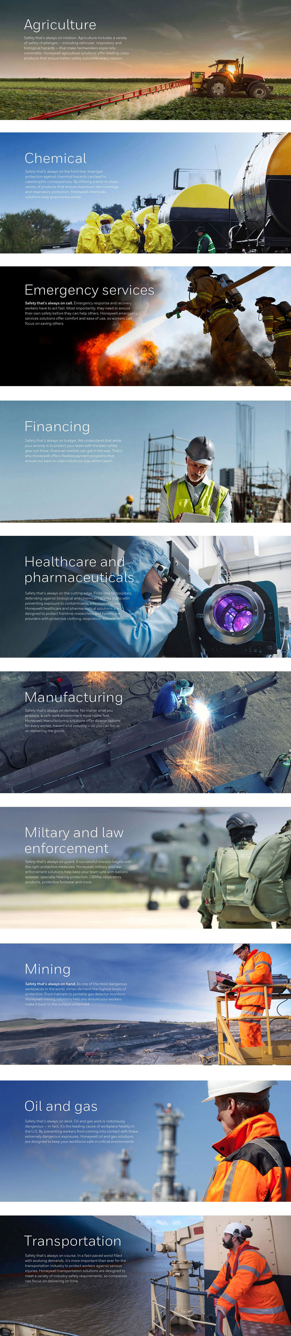 The redesign of Honeywell's industrial safety website, a division of Honeywell that specializes in everything safety related, including clothing, industrial solutions, and software and services solutions.