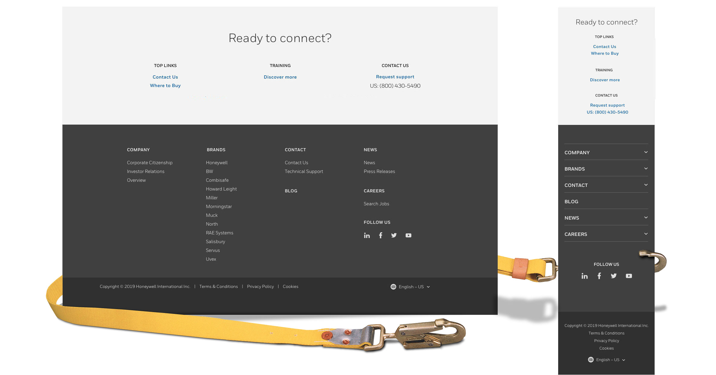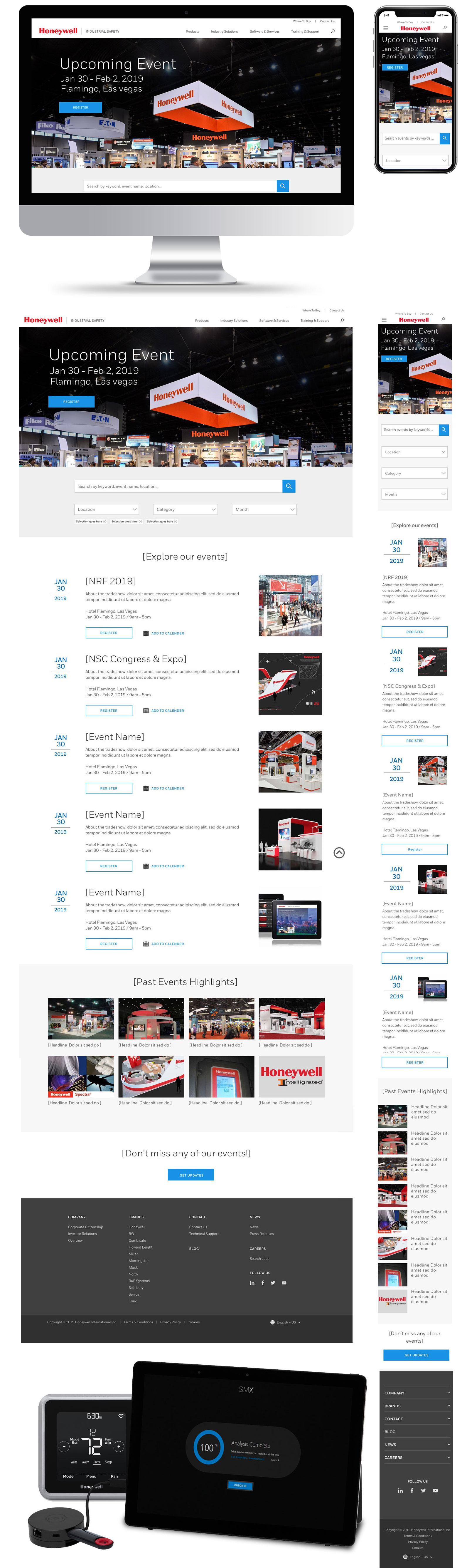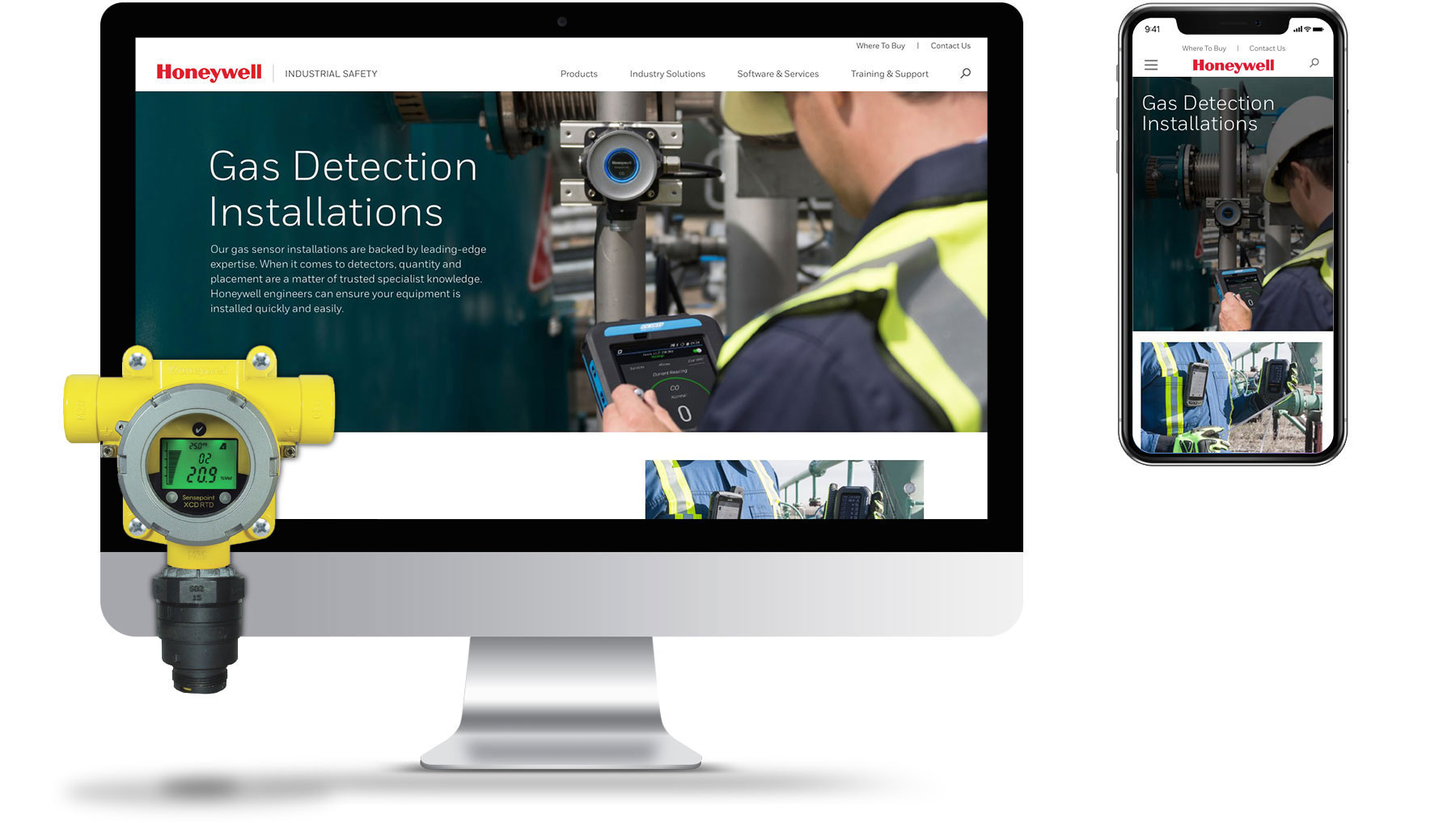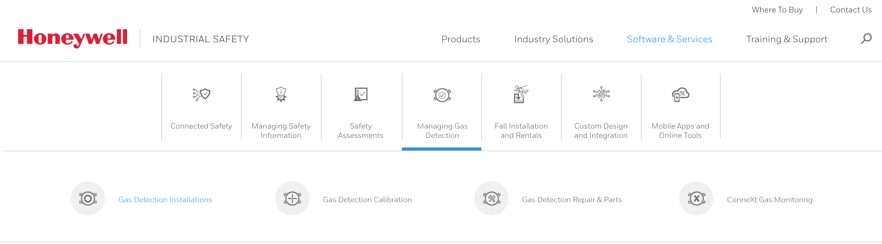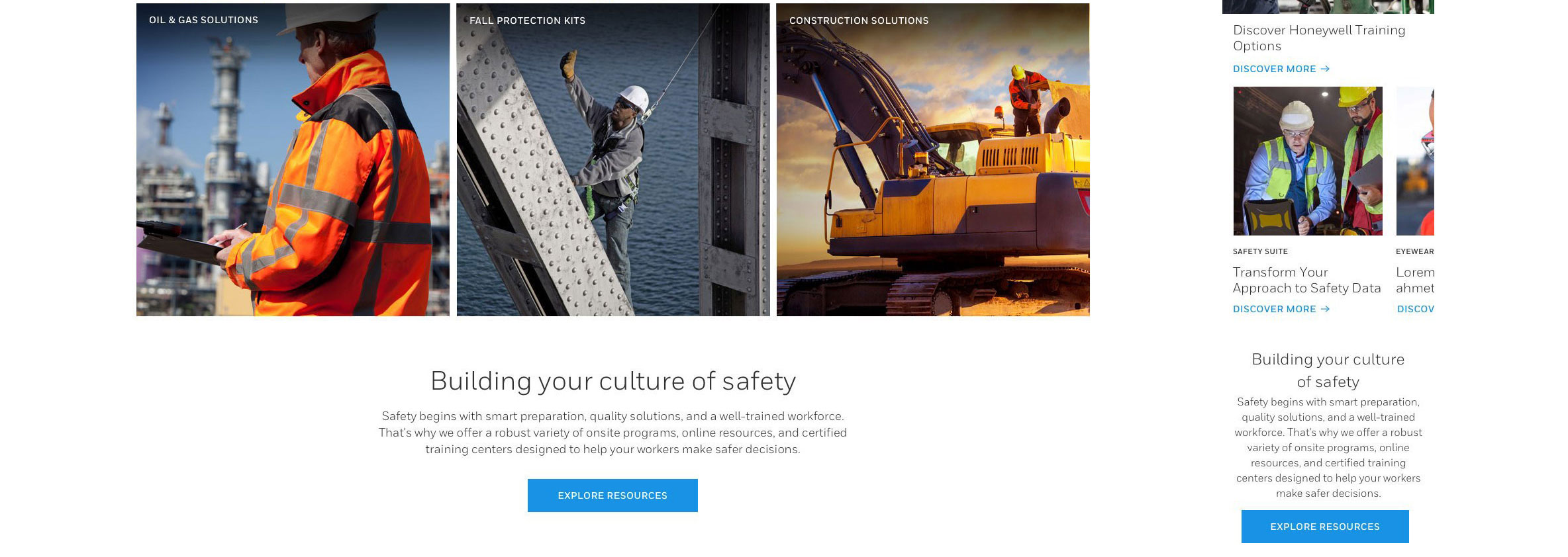 The redesign of Honeywell's industrial safety website, a division of Honeywell that specializes in everything safety related, including clothing, industrial solutions, and software and services solutions.