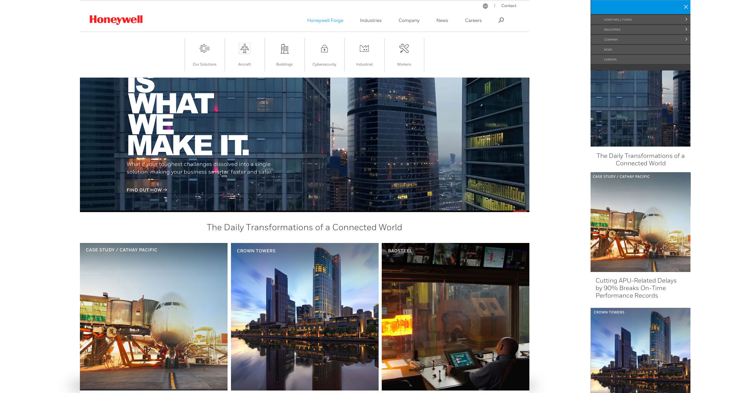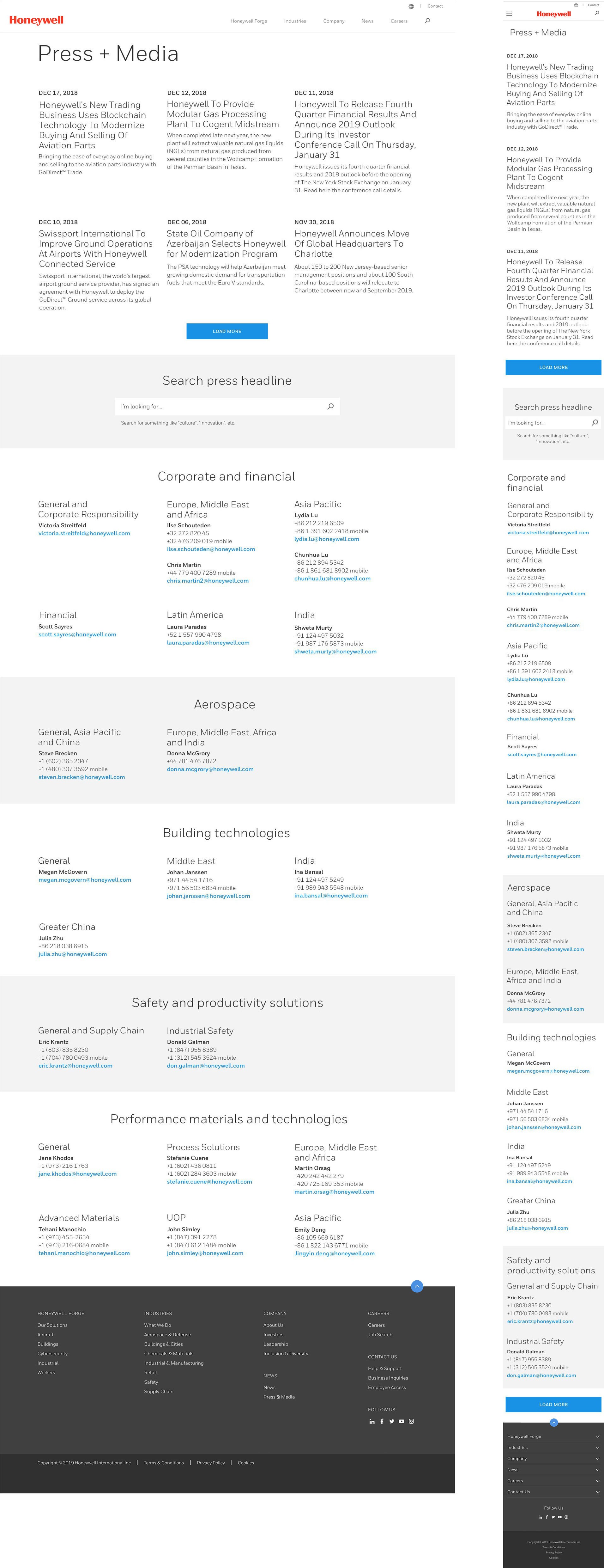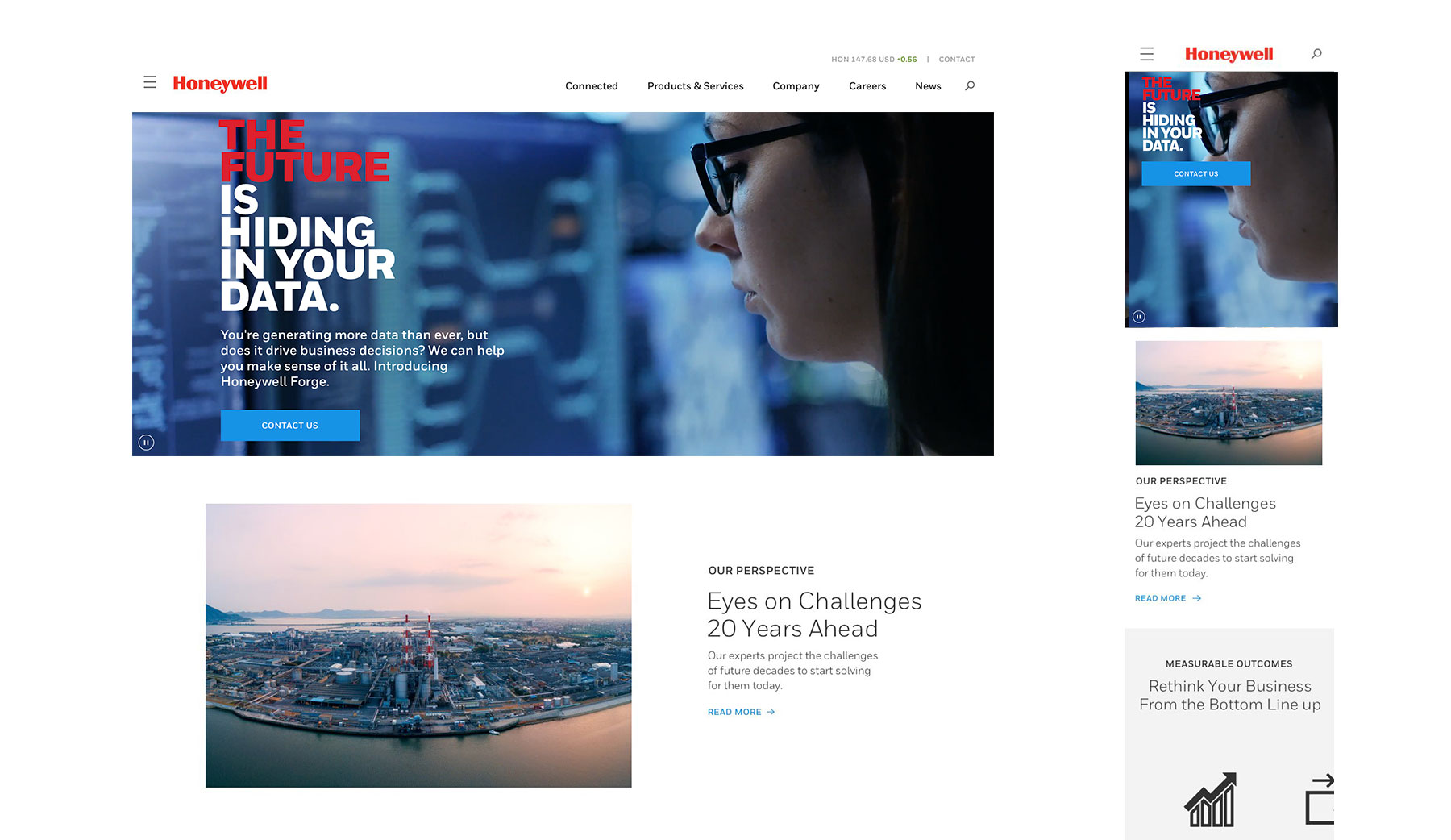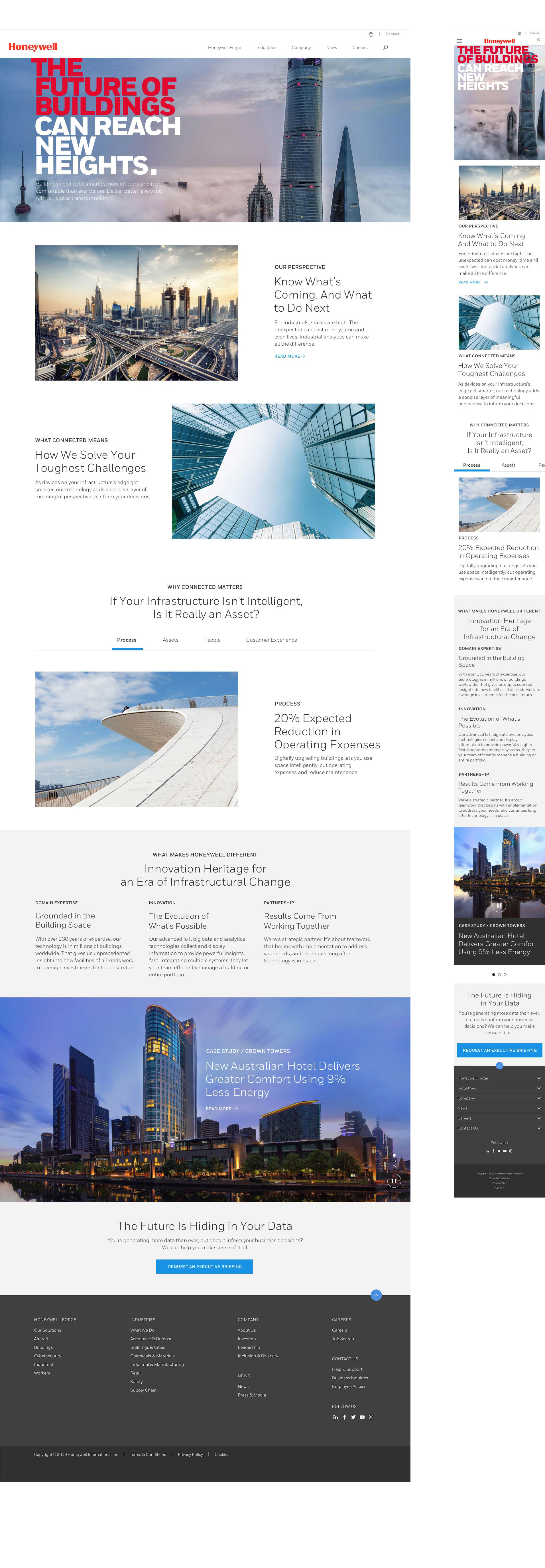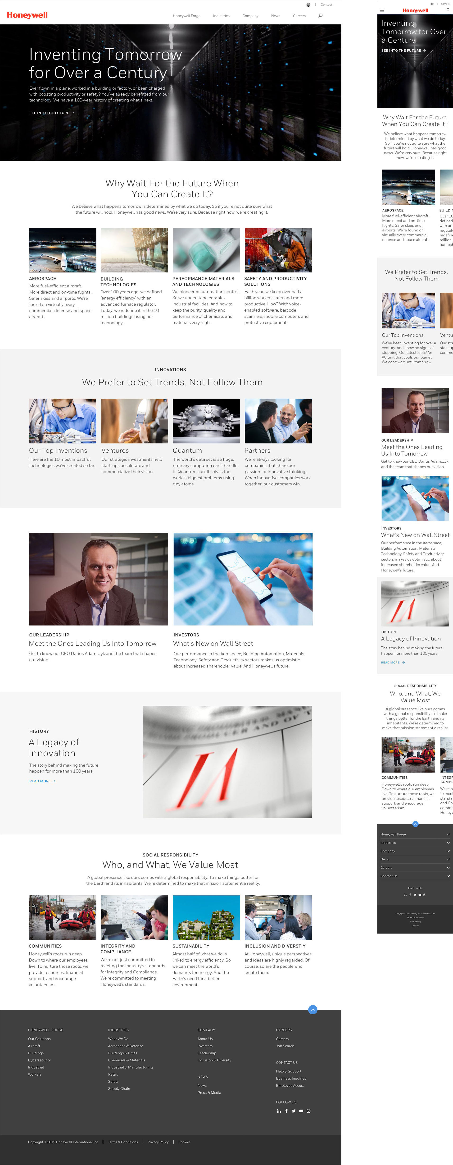 In parallel with Honeywell's industrial safety site, I also designed pages for the new honeywell.com site, utilizing the same system of components and creating new ones as different layout needs arose.