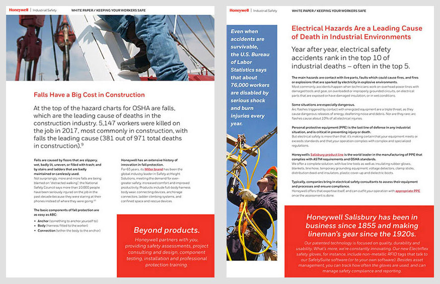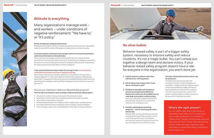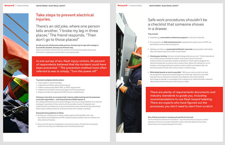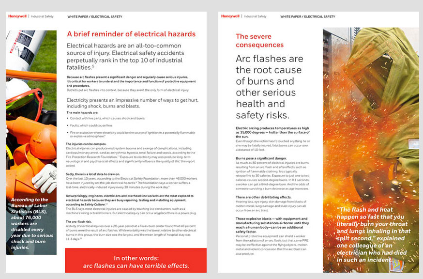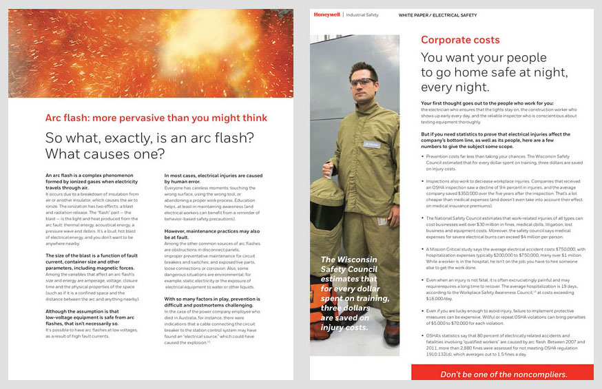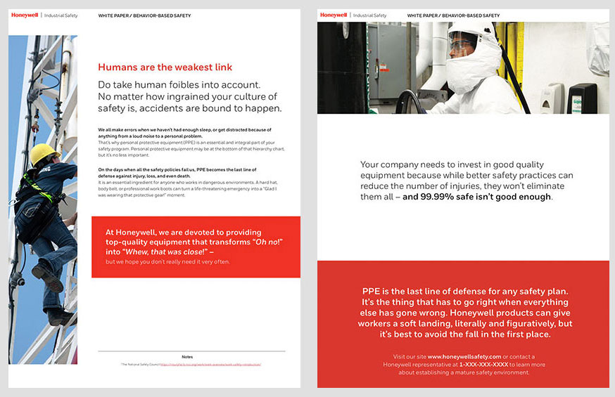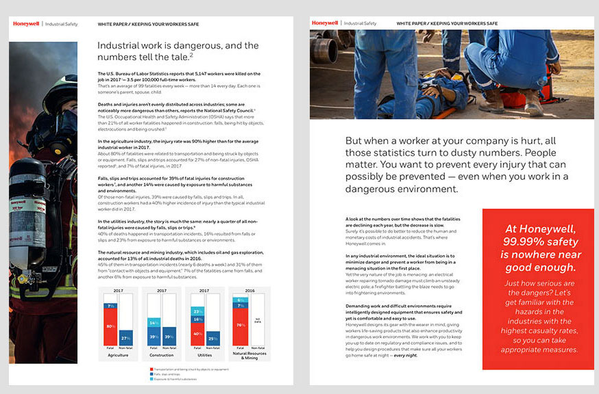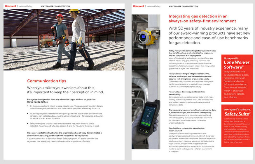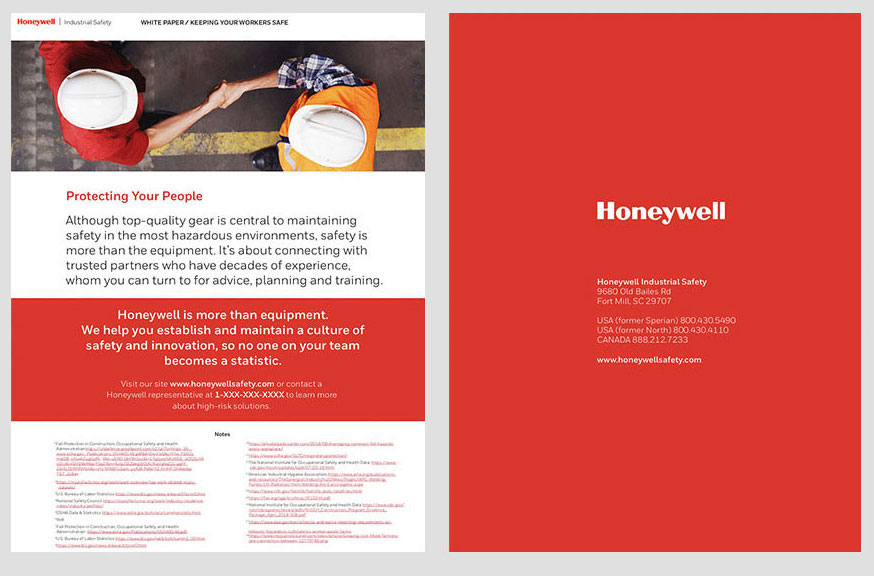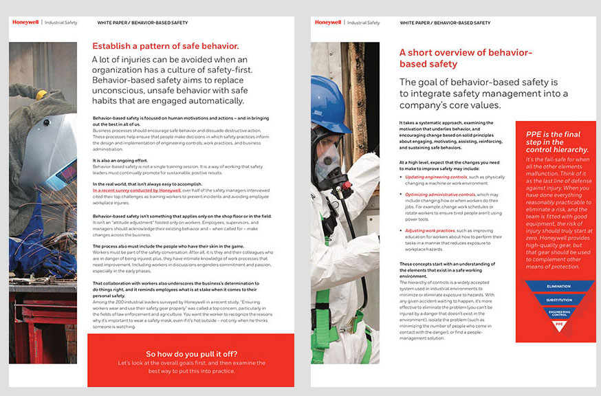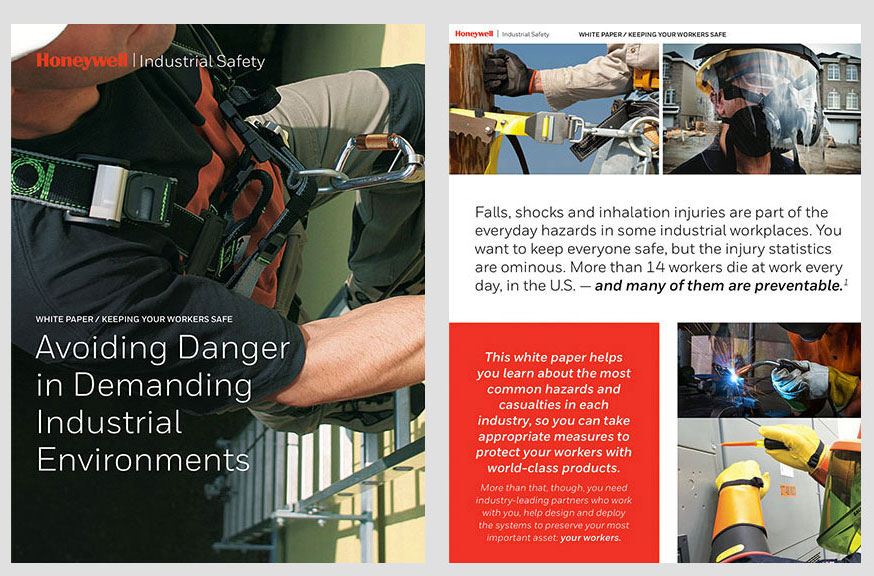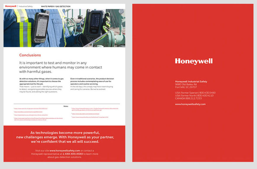 Design and layout for Honeywell Industrial Safety white papers. These five safety brochures are available for download on the HIS website.