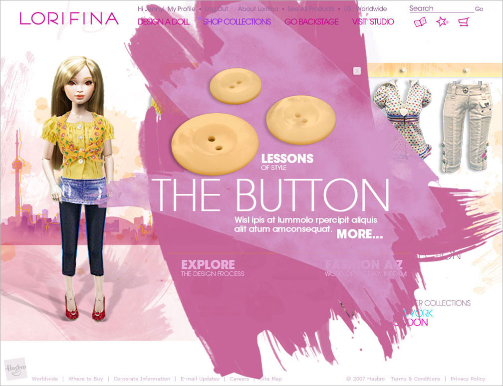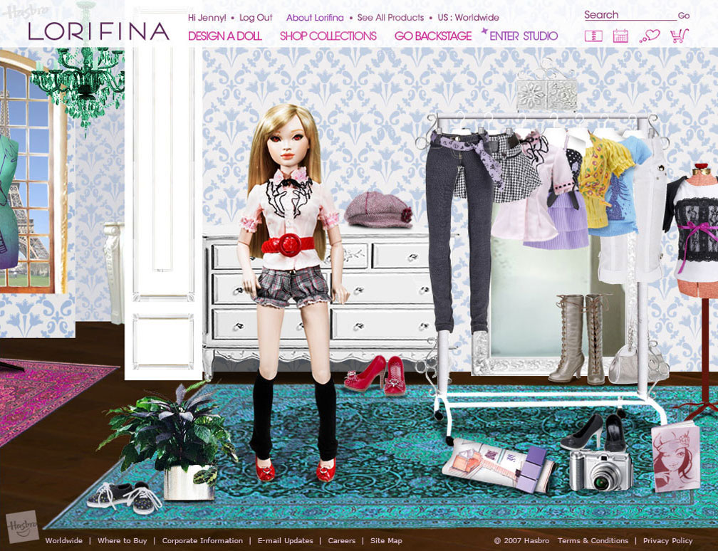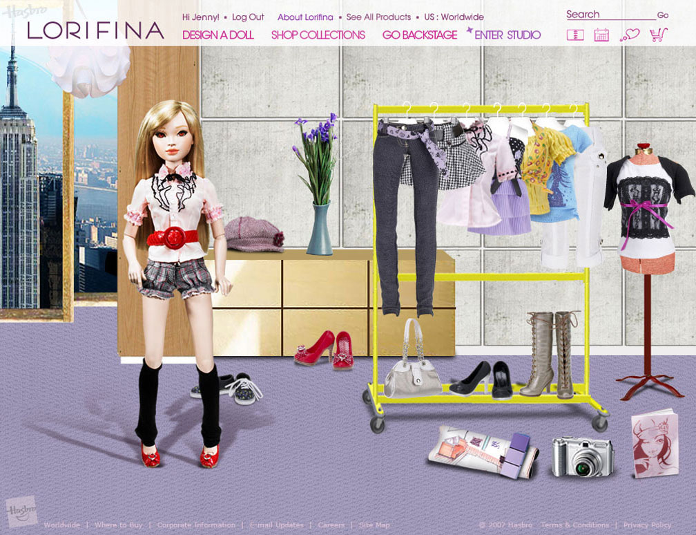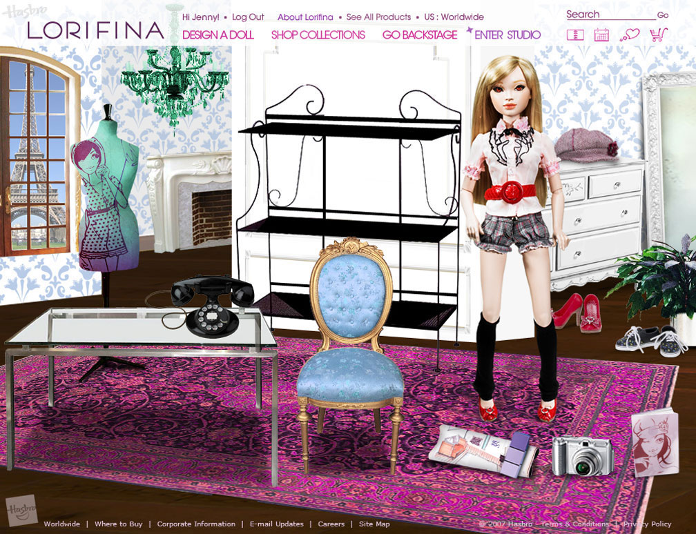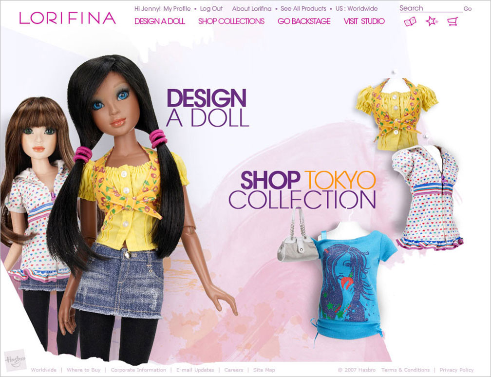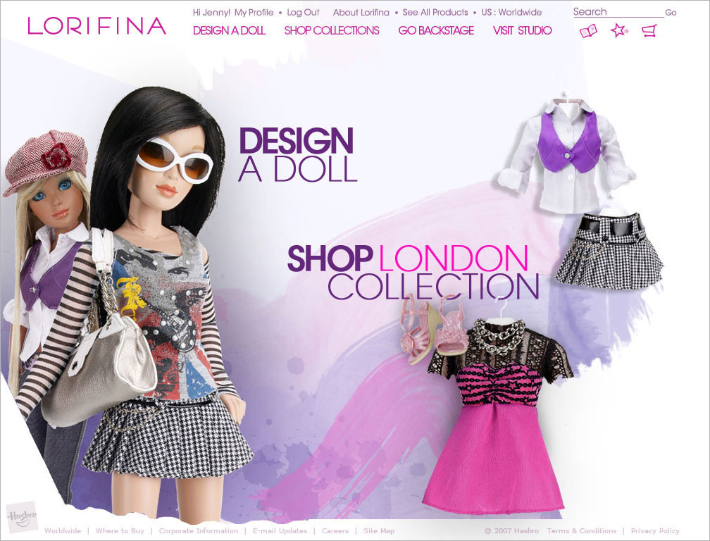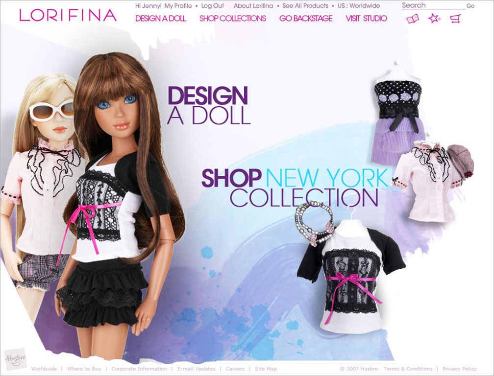 Website design for a new doll being introduced to the market by
