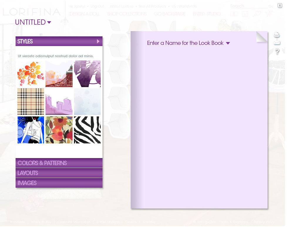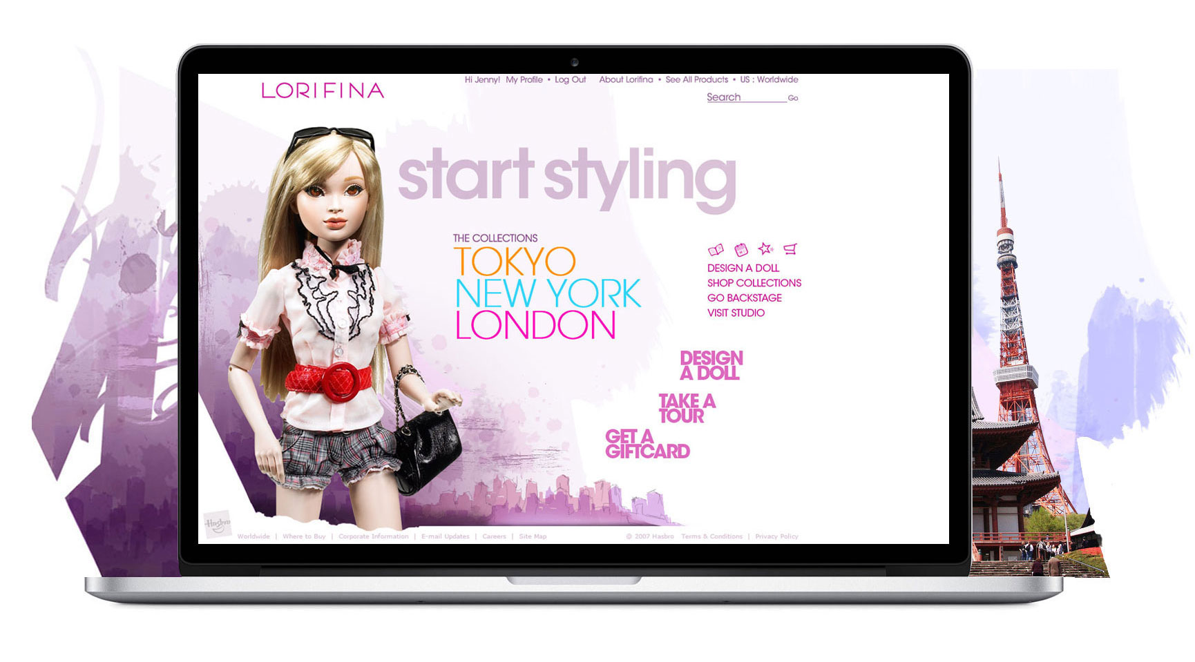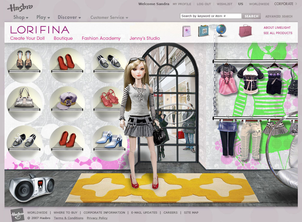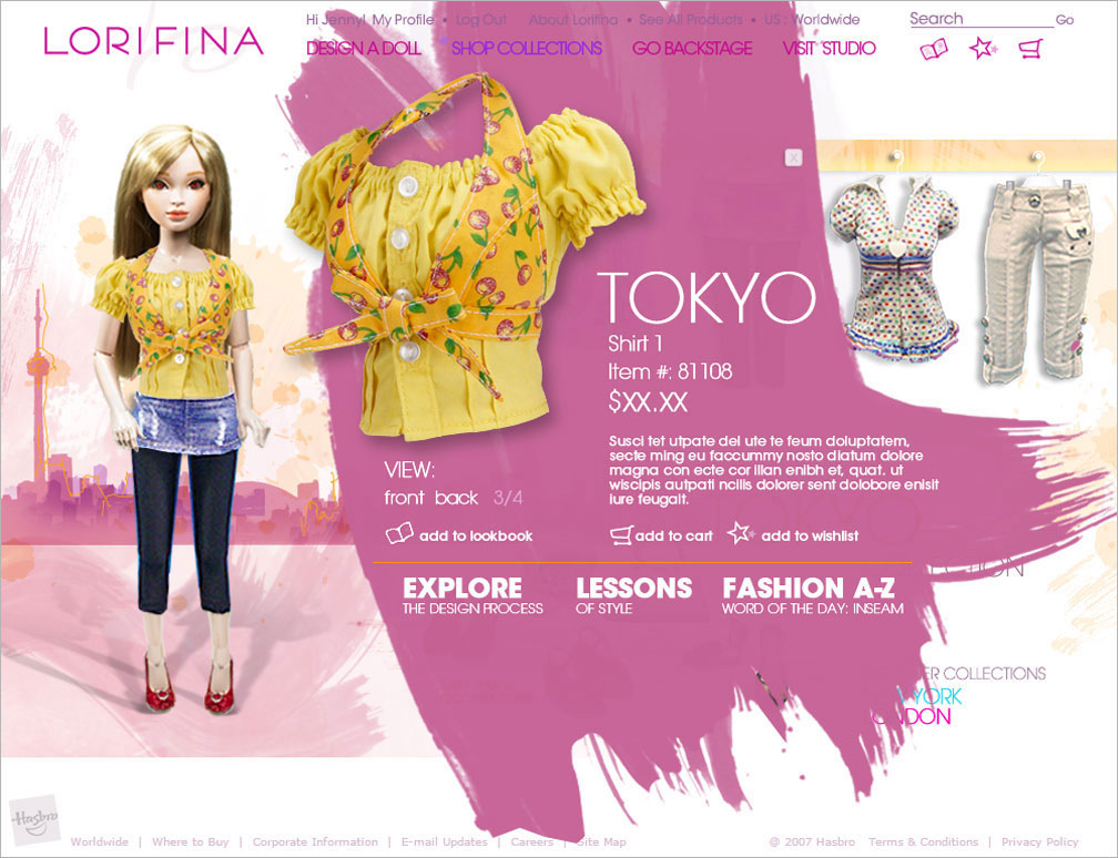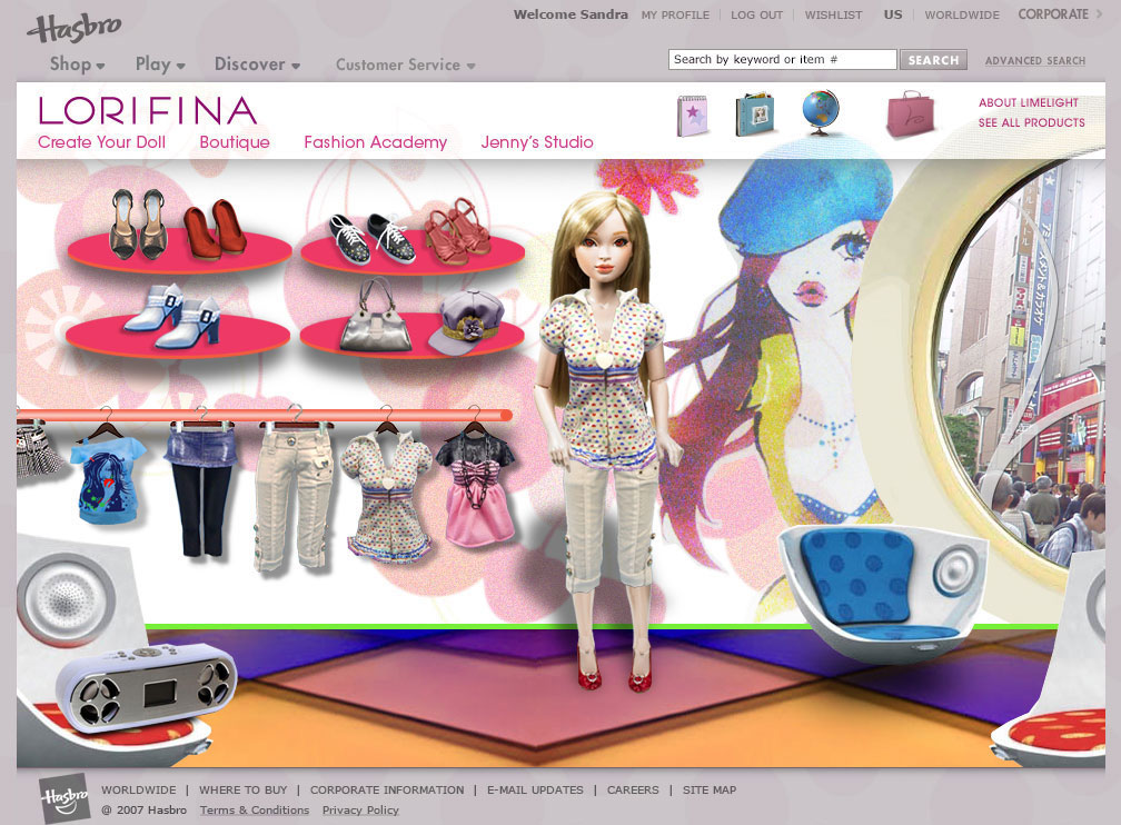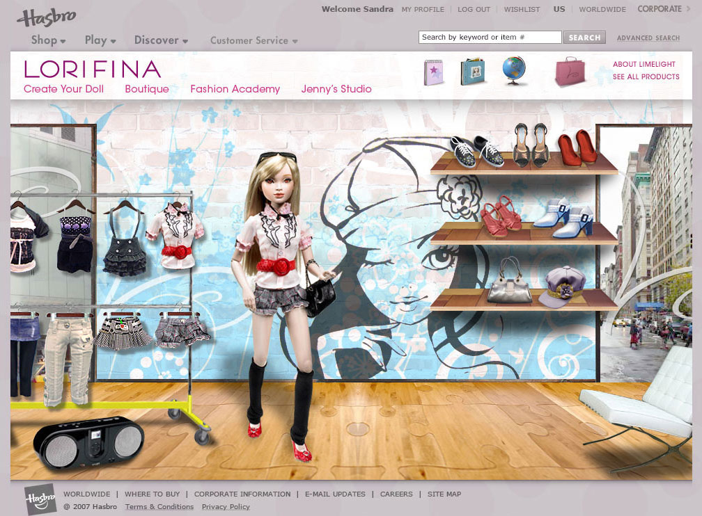 Website design for a new doll being introduced to the market by