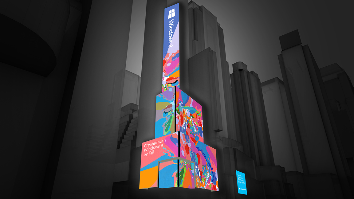 Times Square signage video takeover for Microsoft's Surface computer launch titled Fresh Paint. In collaboration with artist Mr. Kiji.