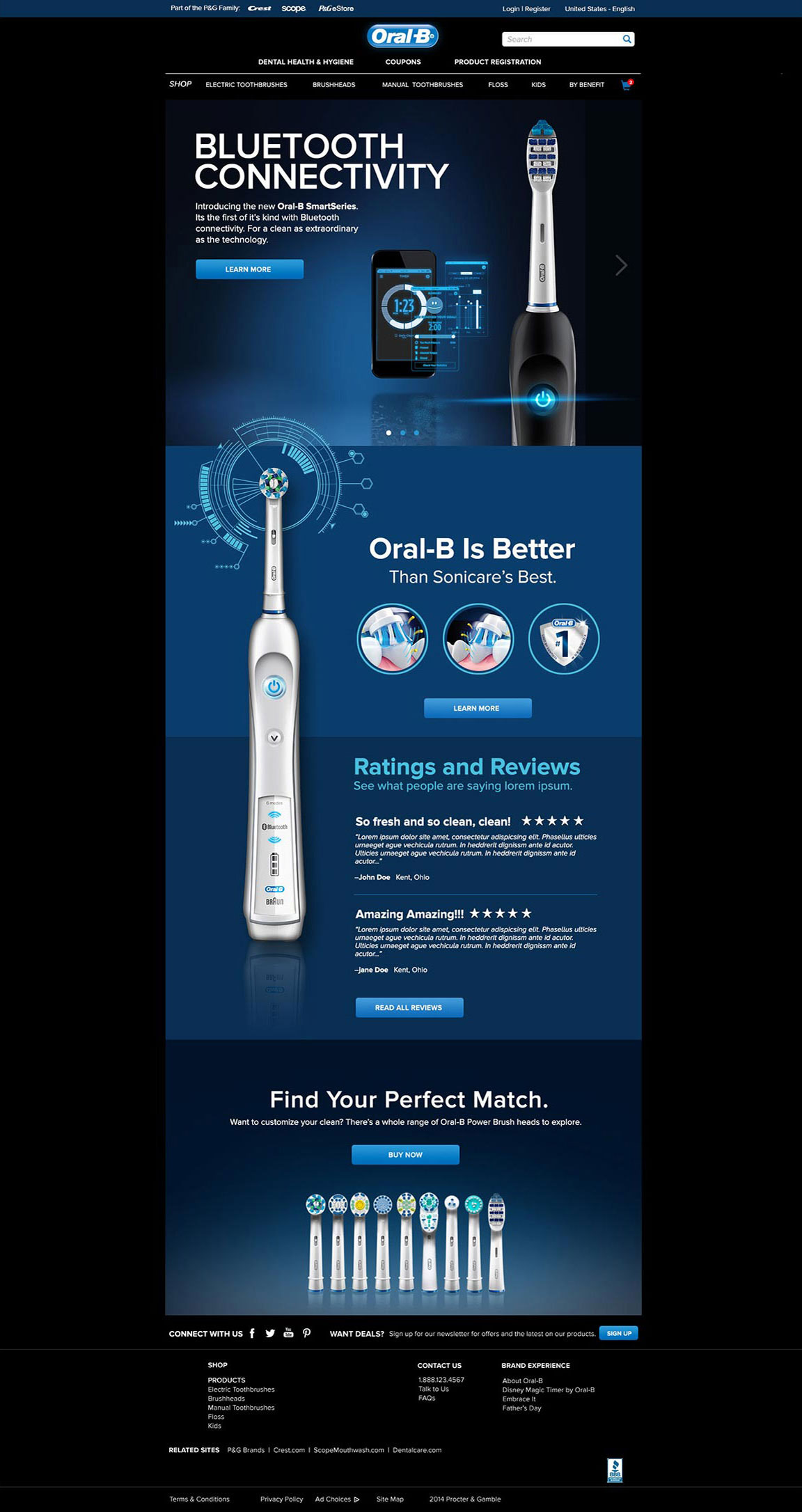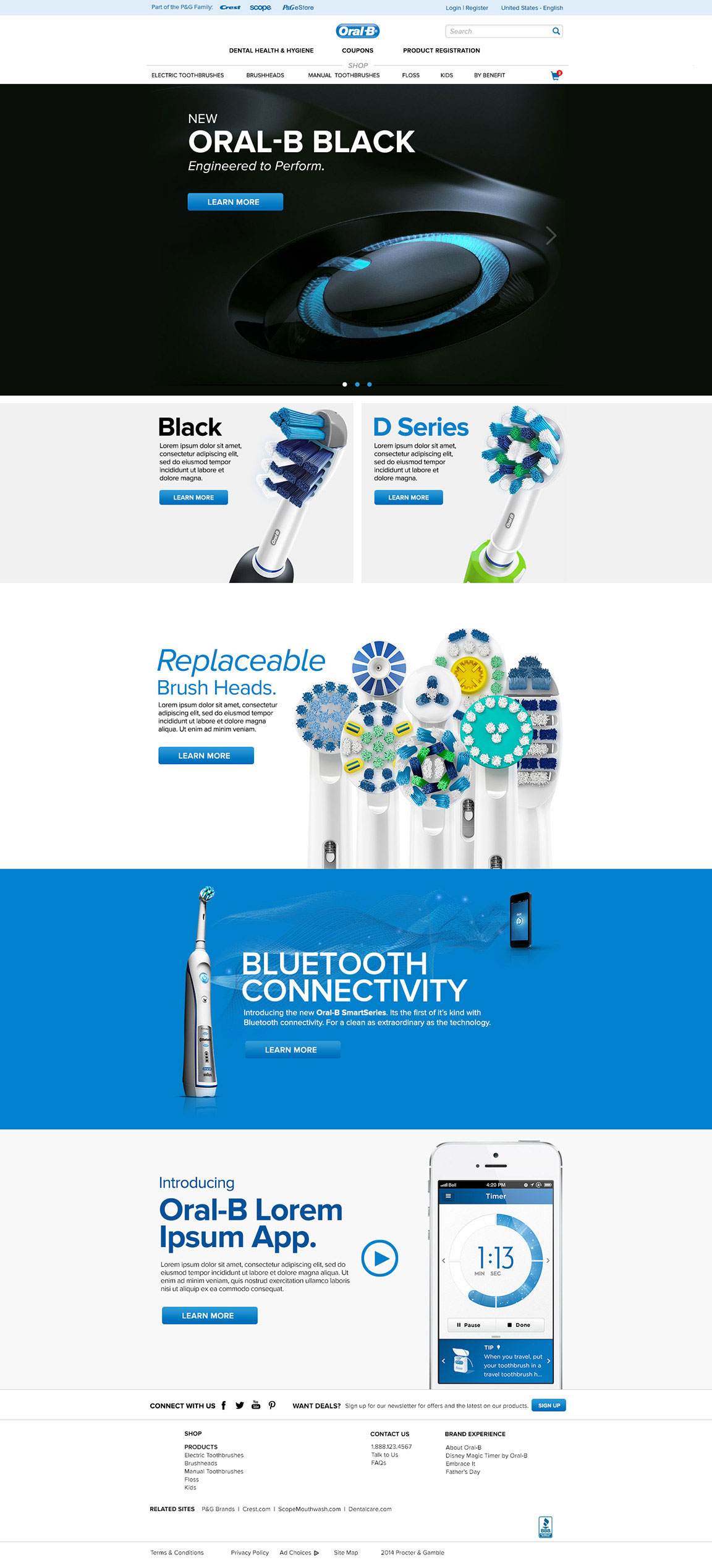 A redesign of Oral B website for P&G, a project called Brand.com, where all the brands under their umbrella were redesigned to fit into a unifying template.