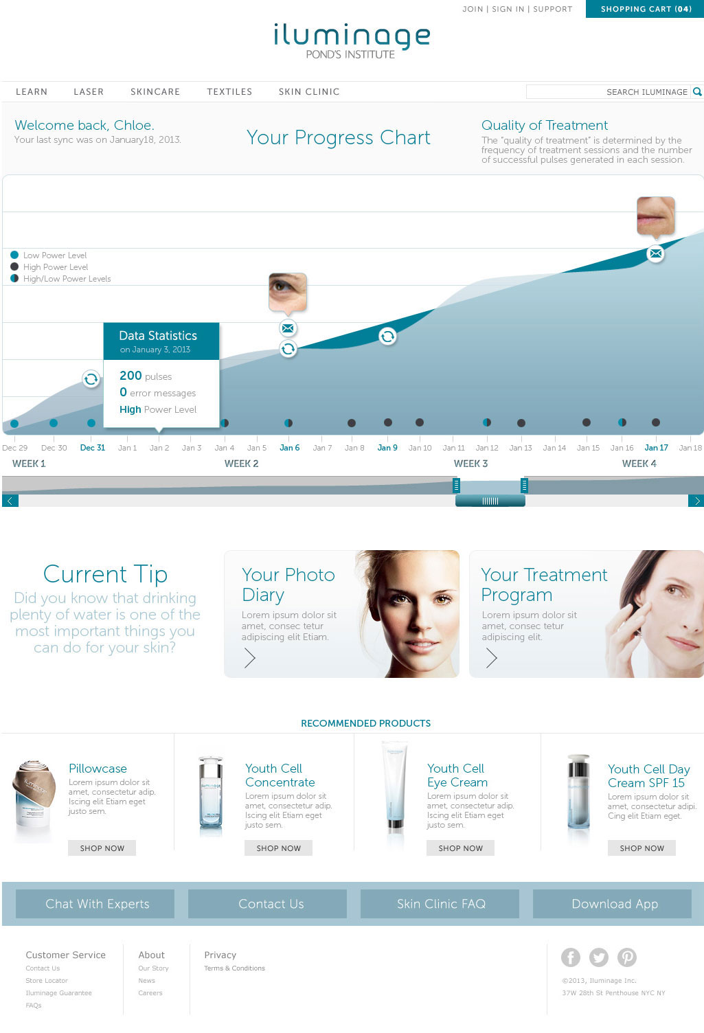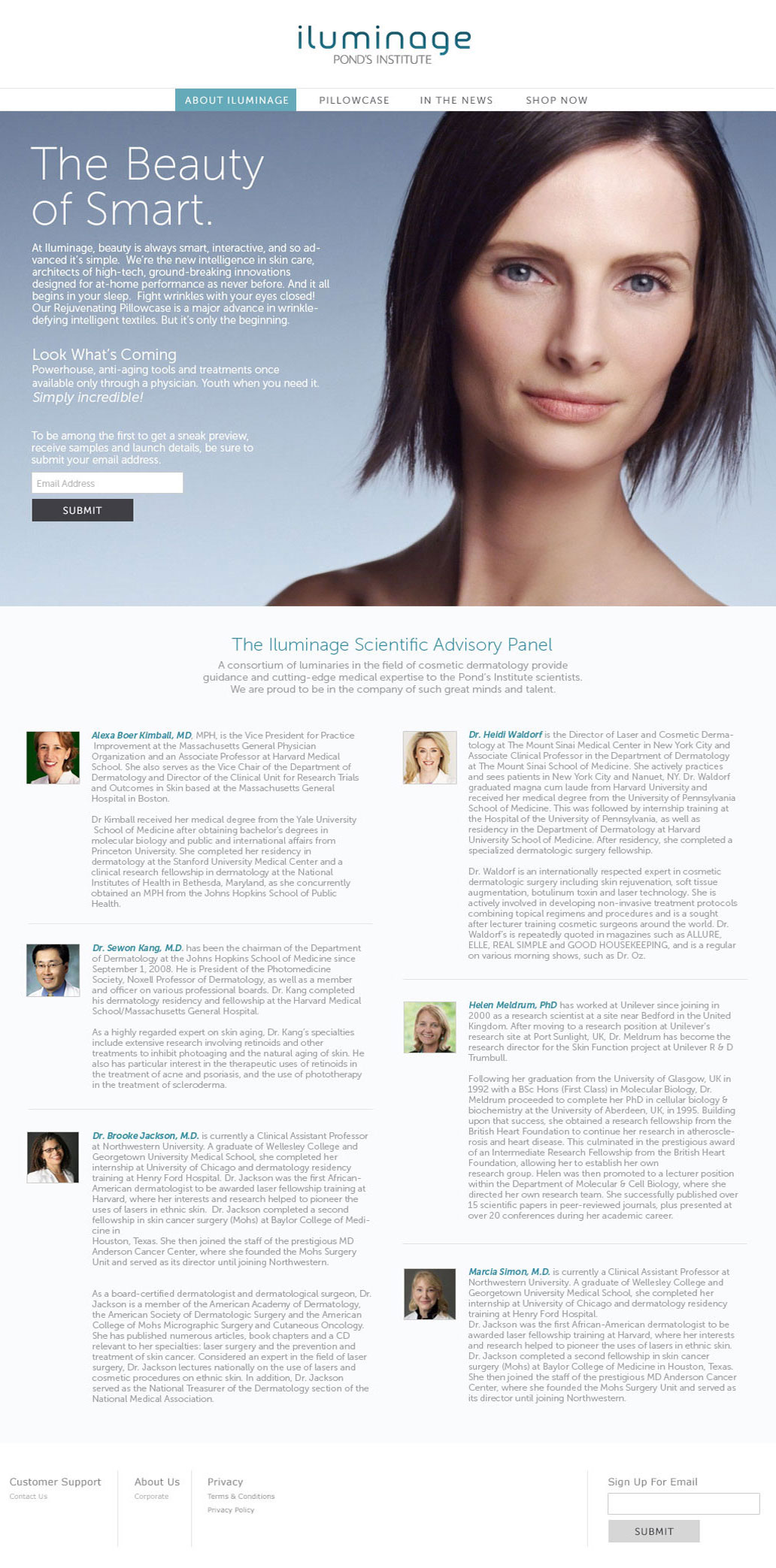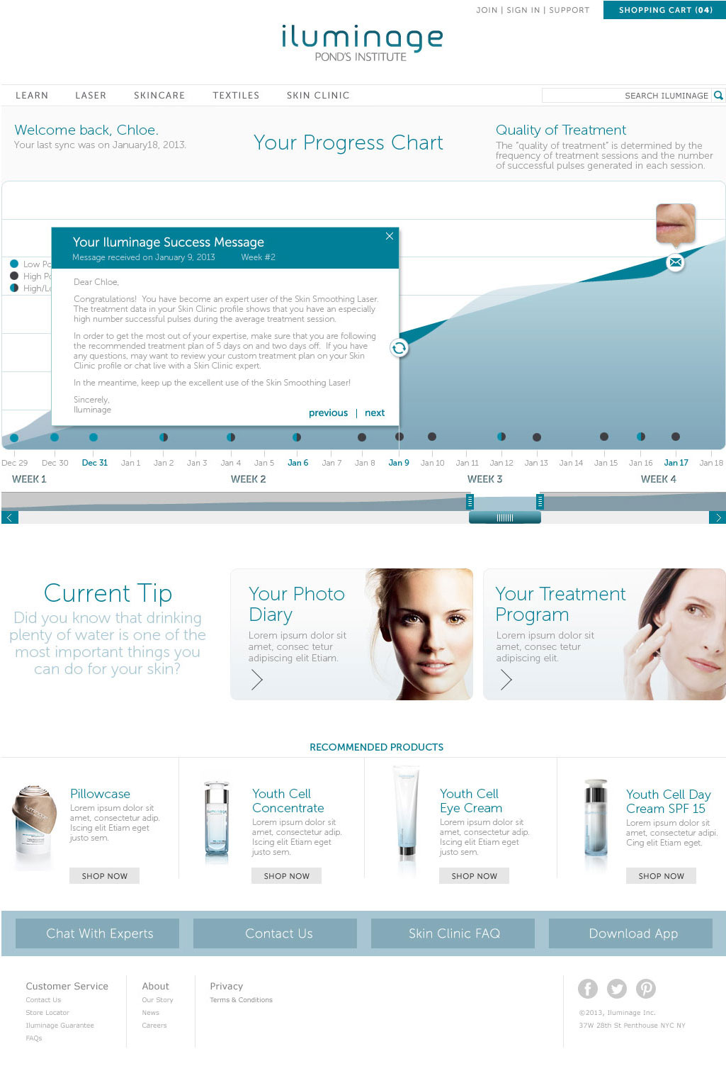 Website design for a new Pond's Institute skin care product called