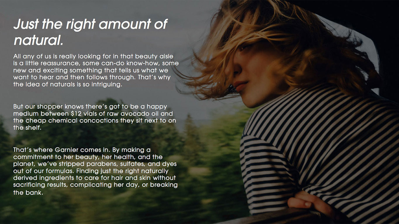 A pitch for Garnier's in-store customer experience, including displays and other brand strategies and activations.