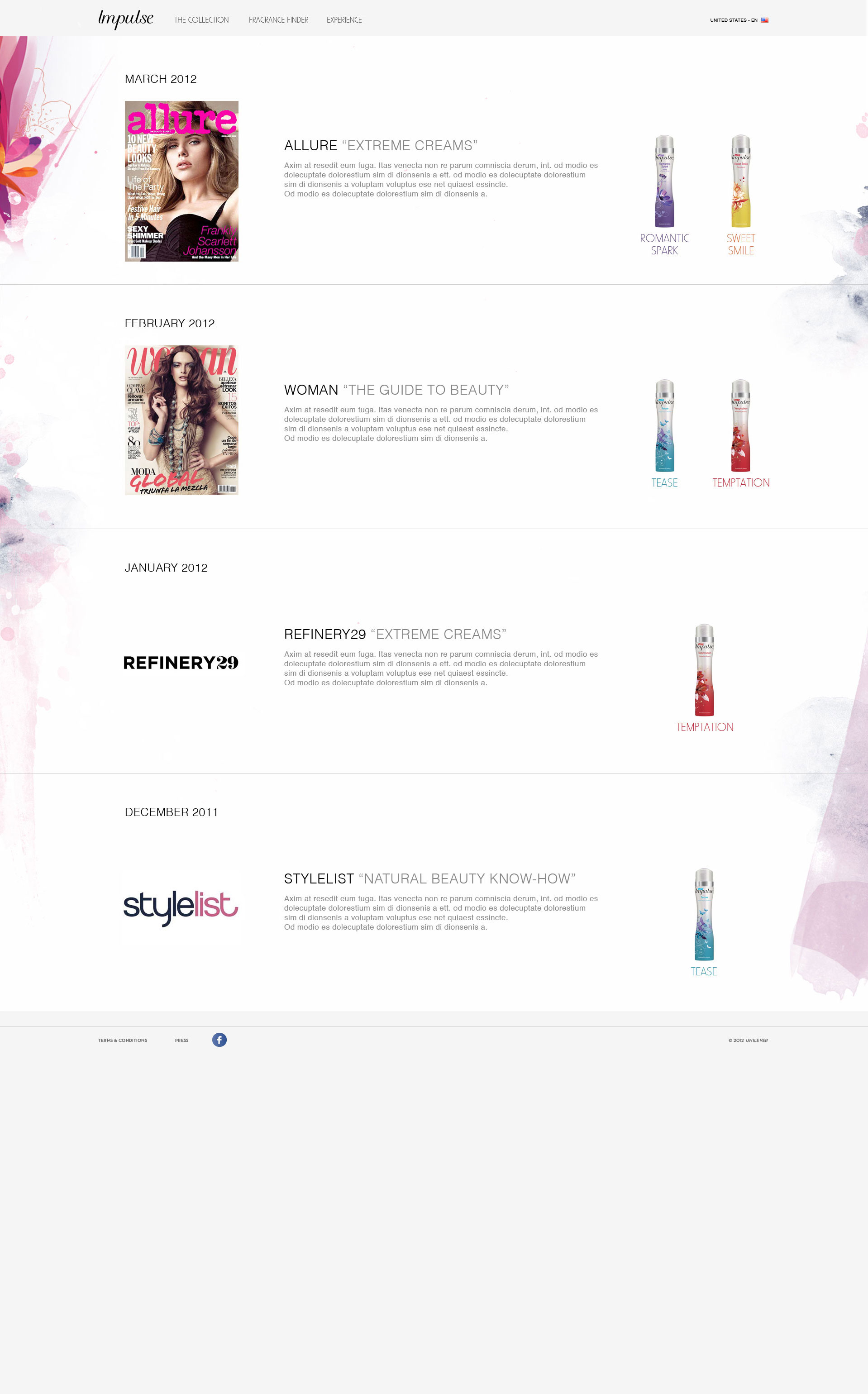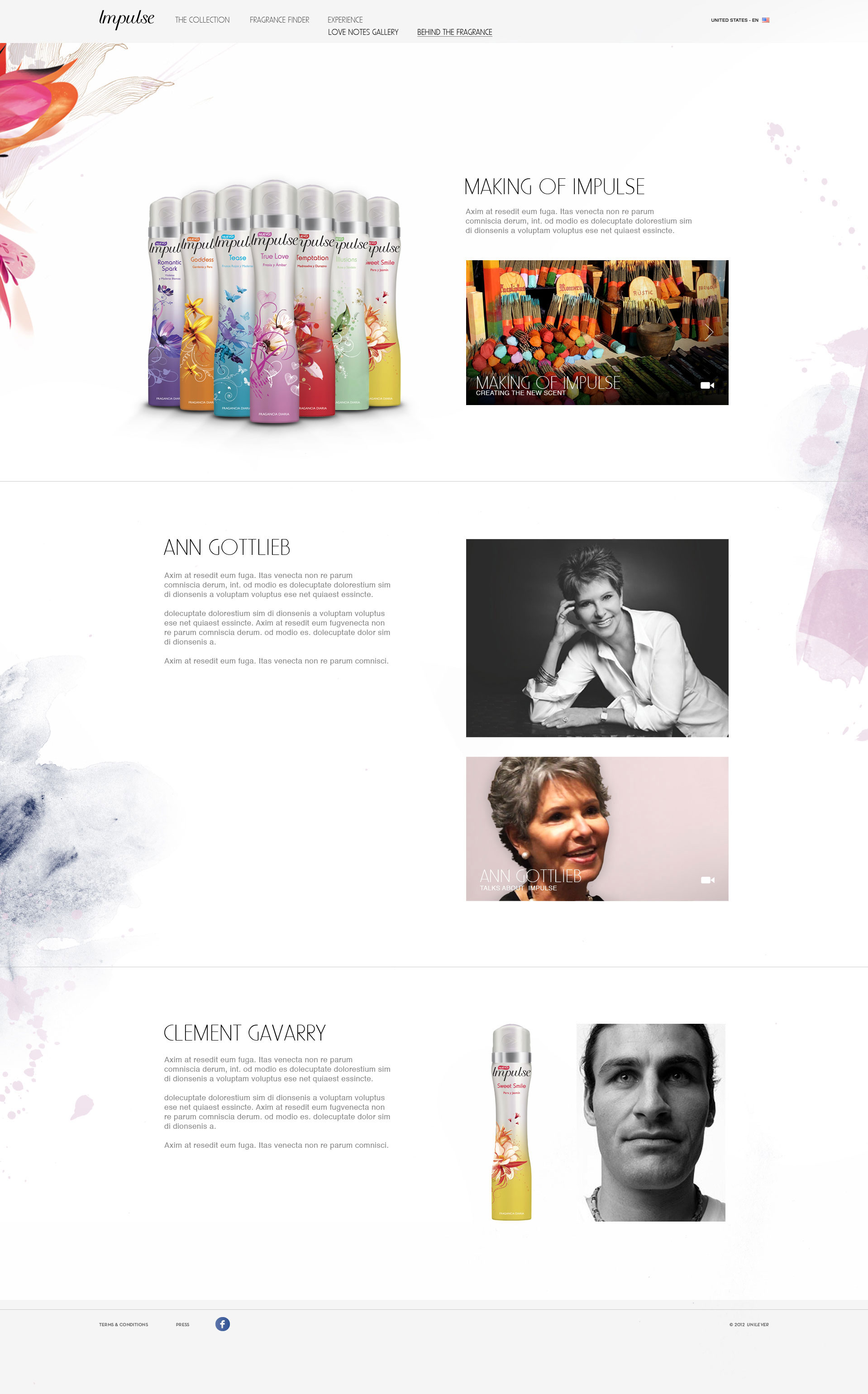 Website design for Unilever fragrance brand