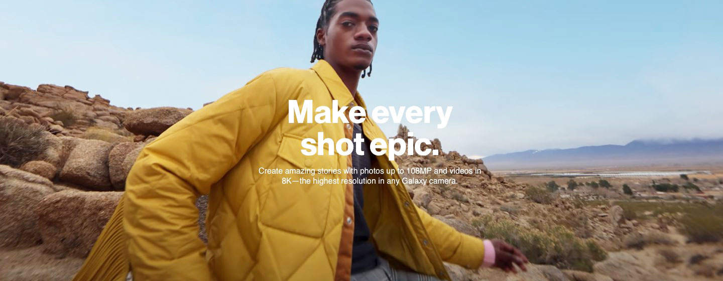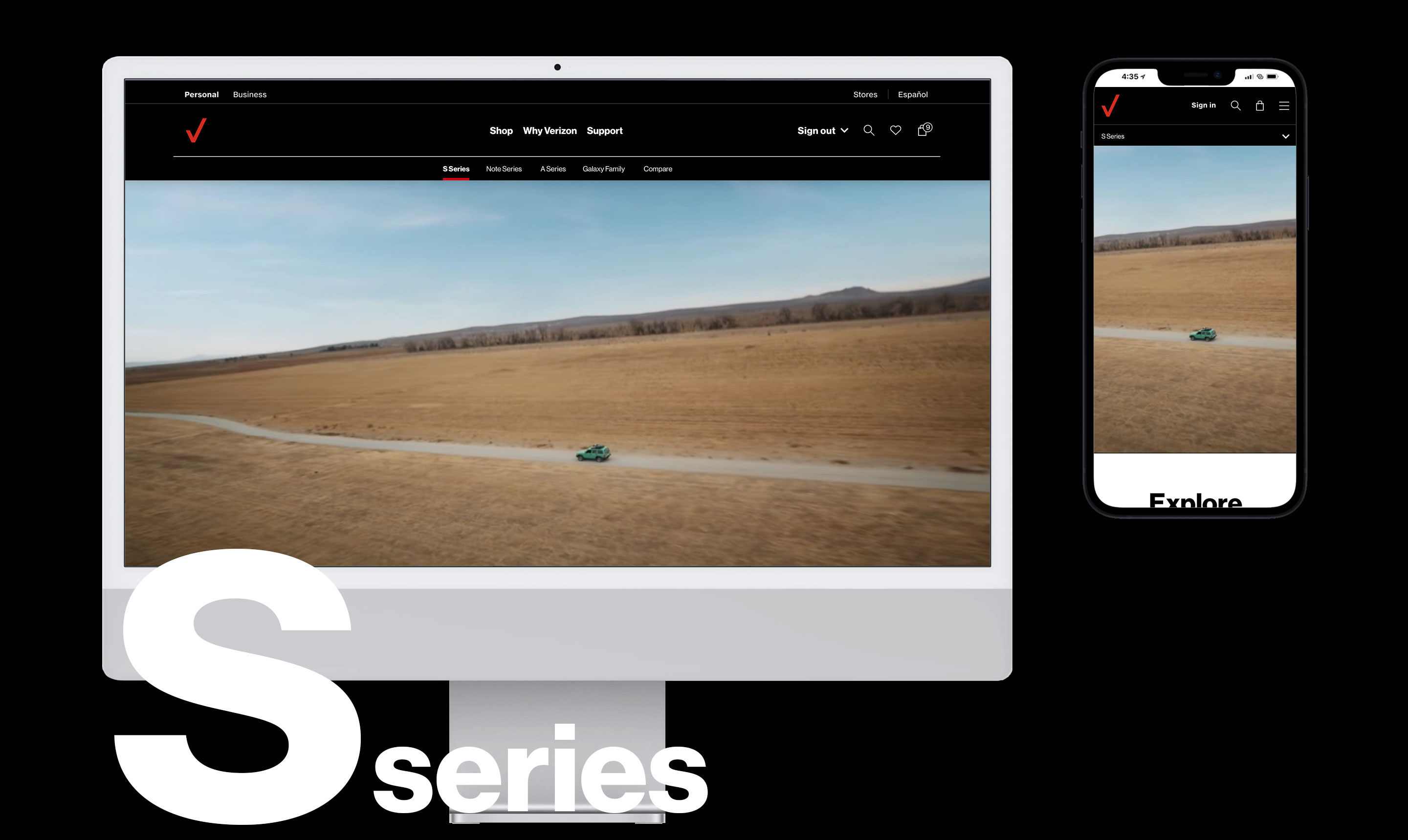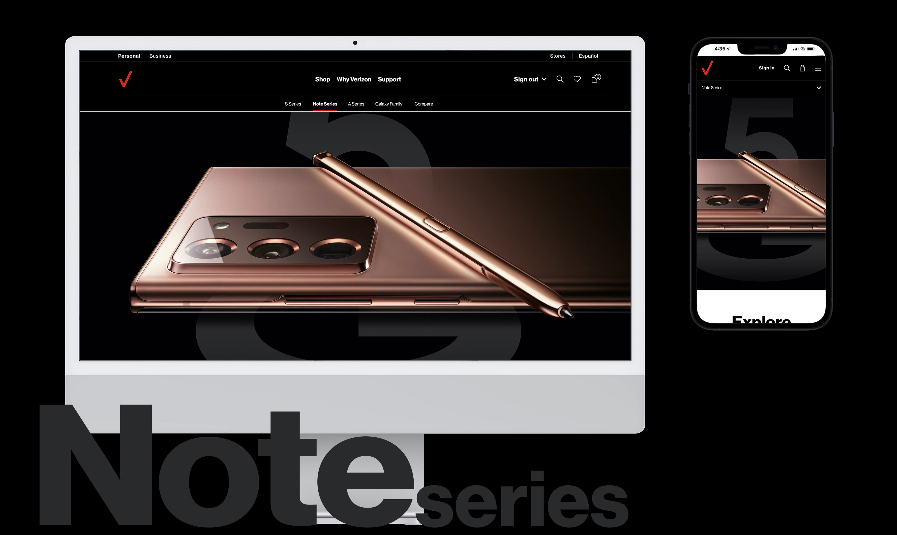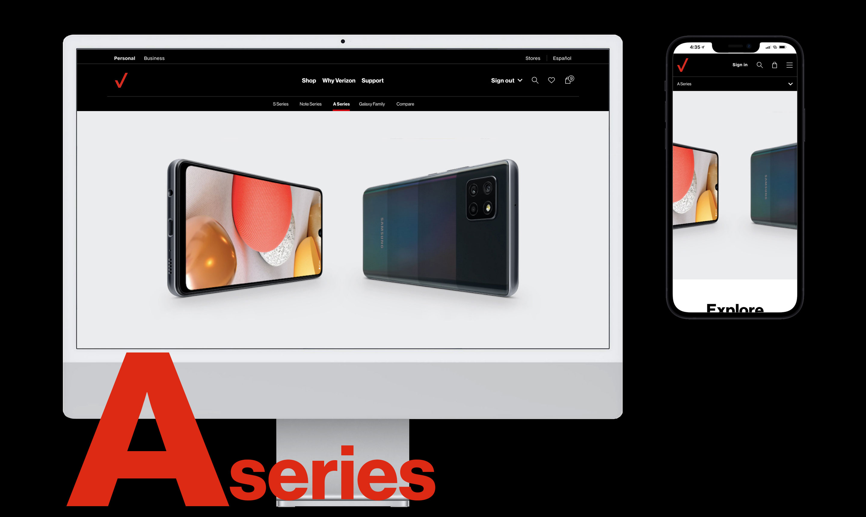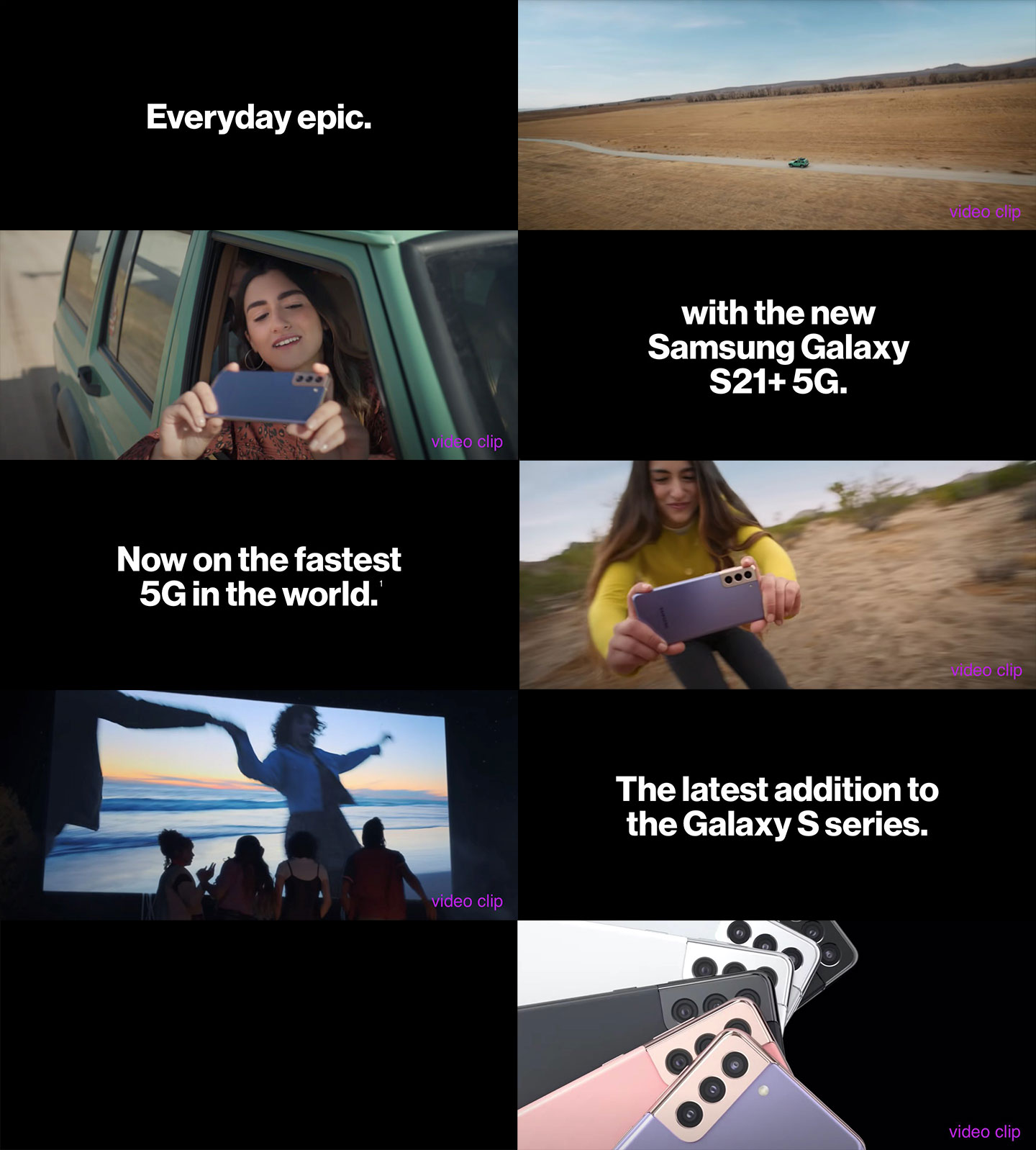Design of intro sequences and landing pages for the Samsung Galaxy Spring 2021 campaign. Pages include the Note, A and S Series phones and the Galaxy Family page that includes watches, ear buds and tablets.
